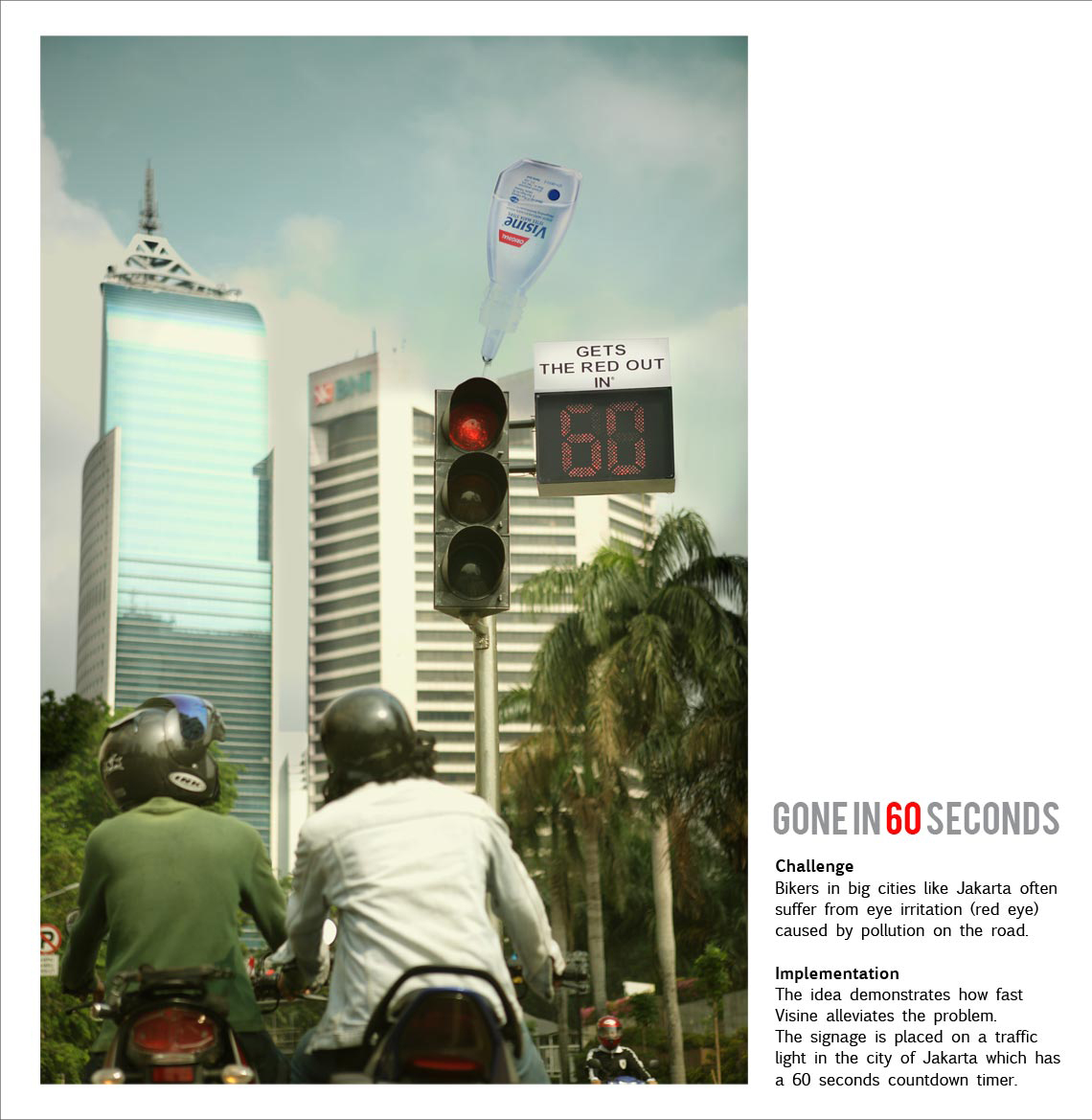 Убрать красноту за 60 секунд!В новой рекламной кампании индонезийское креативное агентство Lowe предлагает велолюбителям задуматься о своих глазах. По утверждению креаторов, почти все велосипедисты в индонезийском городе Джакарта страдают от покраснения глаз, вызванное пылью и грязью на дорогах. Как следствие, на некоторых светофорах города был инсталлирован муляж флакона капель Визин (Visin), утверждающий, что за 60 секунд можно избавиться от покраснения глаз.Теглайн: "Избавляет от красноты за 60 секунд!" Агентство: Lowe, Джакарта, Индонезия Главный творческий директор: Din Sumedi Творческий директор: Firman Halim Главный арт директор: Aji Bekti Главный копирайтер: Billy Andrea Продюсер: Wisnuaji Фотограф: Surya Другое: Budhi |