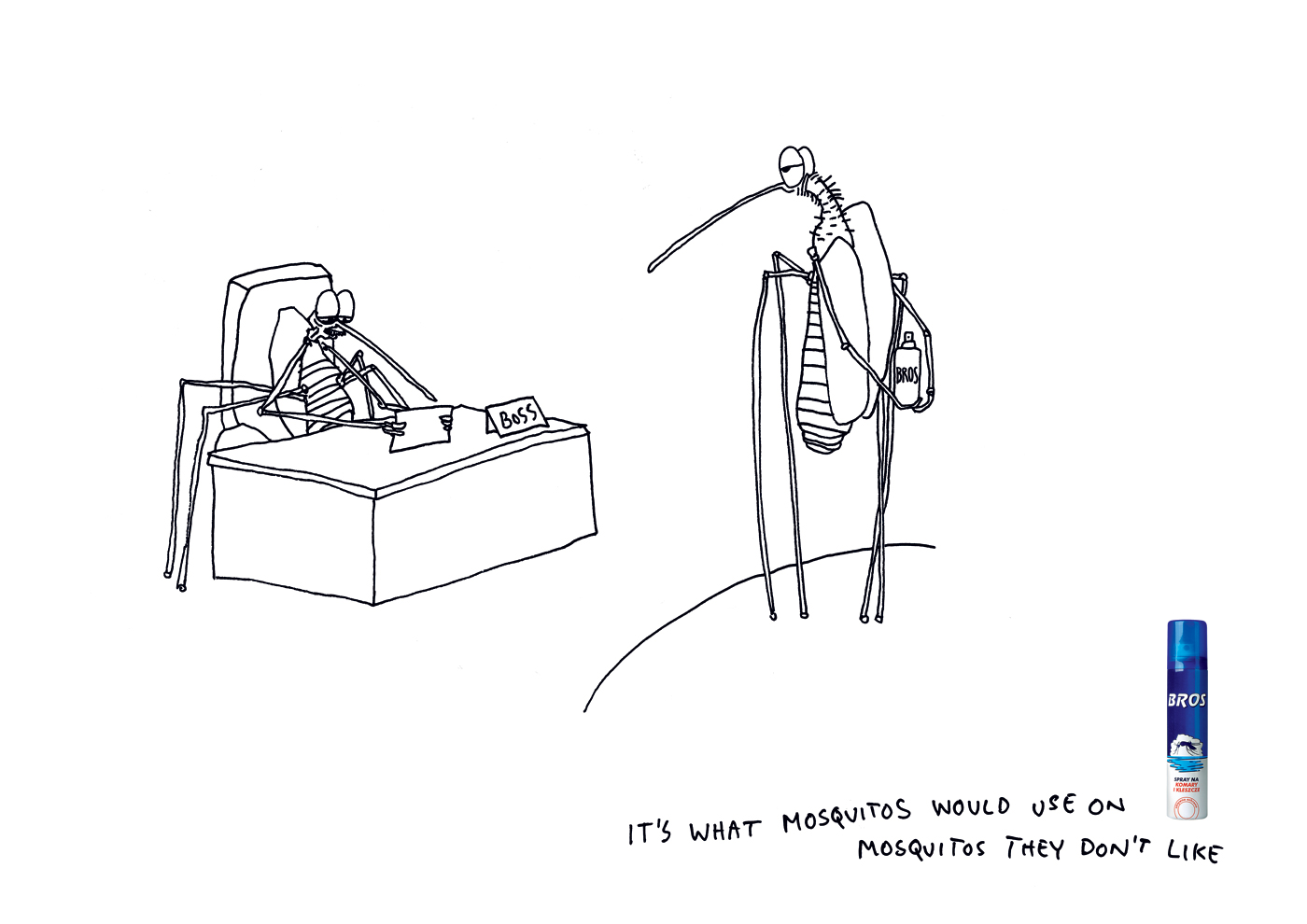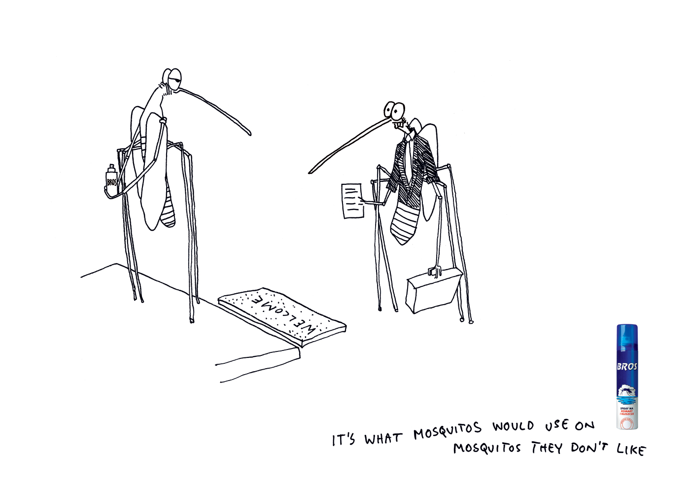 Bros - если бы москиты были как люди, то для выяснения отношений они бы использовали BrosРекламное агентство Leo Burnett Warsaw и Bros считают, что если бы москиты жили обычной человеческой жизнью и испытывали бы такое обычное среди людей чувство как ненависть - то Bros был бы средством, с помощью которого, они устраняли бы тех, кто им не по душе.Это - то, что москиты использовали бы против москитов, которых не любят Агентство: Leo Burnett Warsaw, Poland Креативный директор: Jaroslaw Wiewiorski Арт директор: Martin Winther Копирайтеры: Martin Winther, Michael Lars |