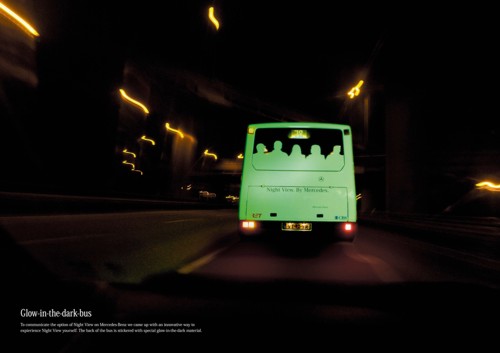 Mercedes-Benz заставил автобус светиться в темнотеАвтомобильная компания Mercedes уже давно использует свою технологию Night View, а нидерландское агентство FHV BBDO в очередной раз помогает эту концерну с созданием рекламных кампаний.Сегодня речь идет о непревзойденной системе Night View Assist, которая позволяет водителю намного лучше видеть дорогу в ночное время суток: в фары встраиваются специальные инфракрасные излучатели, а за стеклом располагается специальная камера, которая работает в этом диапазоне. Таким образом, водитель получает возможность видеть на мониторе черно-белое изображение того, что находится перед машиной, причем на много дальше, чем могут осветить фары. Теглайн: "Night View (Ночное видение). От Mercedes." Агентство: FHV BBDO, Амстердам, Нидерланды Творческий директор: Mark Muller, Bart Bus Арт-директор: Yona H?mmels Копирайтер: Stef Jongenelen Эккаунт-менеджер: Bas Verdoorn |