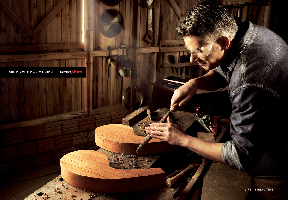 Globo News: создай собственными мнение своими руками!Сеть каналов Globo принадлежит организации Organizacoes Globo, и транслируется с апреля 1965 года. Эта сеть является одной из самый крупных в Серверной и Южной Америки и четвертой в мире по количеству зрителей (свыше 80 миллионов человек).Один из телеканалов сети называется Globo News. По нему транслируются самые последние новости в режиме вещания 24 часа в сутки, что дает его слушателям возможность составить собственное мнение о ситуации в их стране и в мире в целом. Чтобы раскрыть эту тему, бразильское креативное агентство CGCOM показывает, как в буквальном смысле создается это самое собственное мнение. Теглайн: "Составь свое собственное мнение. Жизнь в реальном времени." Агентство: CGCOM, Рио-де-Жанейро, Бразилия Творческий директор: Marcos Pedrosa Арт-директор: Bruno Di Celio Копирайтер: Fernando Conde Фотограф: Aderi Costa |