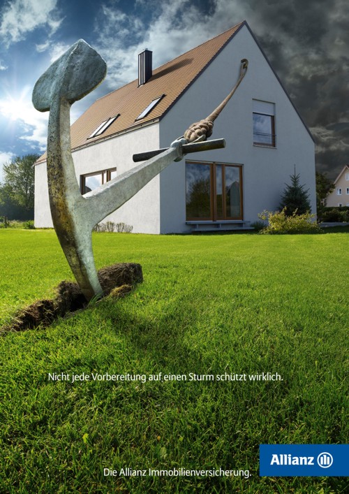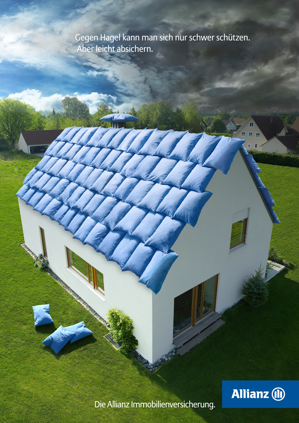 Allianz: застрахуй свой дом от слона!Креаторы из немецкого креативного агентства Atletico International подготовили эту серию рекламных принтов для страховой компании Allianz, которая может себе позволить предлагать расширенные программы по страхованию имущества. Дело в том, что Allianz является одной из самых крупных и уважаемых страховых компаний в мире: в ее состав входит свыше 600 дочерних организаций в 70 странах (в России с 1990 года), а крупнейшее в мире рейтинговое агентство Standard and Poor's присудило Группе Allianz рейтинг надежности АА.Теглайн: "Сложно защитить себя от града. Но легко застраховать. Страхование недвижимости от Allianz." "Не так смешно, но так же тяжело: 20 сантиметров снега на крыше. Страхование недвижимости от Allianz включает страхование последствий от снежных нагрузок." "Не все подготовительные действия могут защитить вас от бури. Страхование недвижимости от Allianz." Агентство: Atletico International, Берлин, Германия Главный творческий директор: Roland Vanoni Арт-директор: Lars Hodeige Копирайтер: Anne Katrin Trybek Фотограф: Markus Meuthen Директор по работе с клиентами: Ilka Gulzau |
