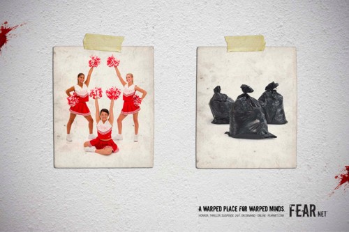 FearNet для тех, кому болельщицы нравятся только в пластиковых мешкахFearNet, или так называемая "Сеть Ужасов", является детищем таких гигантов как Lionsgate, Comcast и Sony Pictures Entertainment. Сеть была запушена 31 октября 2006 года и включает в себя кабельный телеканал (с возможностью просмотра фильма по запросу) и веб-сайт www.fearnet.com, где поклонники фильмов ужасов могут не только узнать последние новости, прочитать рецензии на фильмы, но еще и бесплатно посмотреть полные версии некоторых кинолент.В честь двухлетия существования сети FearNet американское агентство The Brooklyn Brothers подготовило эту серию принтов, а также небольшую рекламную кампанию, которая полностью соответствует тематике сайта. Теглайн: "Извращенное место для извращенных умов." Агентство: The Brooklyn Brothers, Нью-Йорк, США Арт-директор: Metin Sozen, Stephen Rutterford Копирайтер: Mike Pierantozzi, Guy Barnett Режиссер: Chris Bren Производство: Picture Farm Pro. Продюсер: Arianne Culley, Tina Lam, Paul Parton DOP: Niels Dachler Фотограф: Robert Christensen Типограф: Alice Cavalcante Иллюстратор: (Splat poster) Moto Komatsu Редактор: Mariana Martin Capriles Другое: BA-reps. |