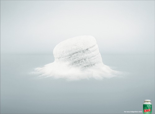 Eno Fruit Salt растворят вредную пищуФруктовая соль Эно (Eno Fruit Salt) производится в Великобритании фирмой GlaxoSmithKline. Этот препарат, как следует из его названия, изготовлен из натуральных фруктов и оказывает легкое слабительное действие, а также помогает бороться с несварением. Выпускается он в виде растворимого порошка, который и представлен на этих рекламных принтах, созданных креативным агентством Grey Hong Kong.Теглайн: "Для облегчения несварения" Агентство: Grey Hong Kong Главный творческий директор: Keith Ho Творческий директор: Brian Ma / Alfred Wong Арт-директор: Brian Ma / Leo Yeung Копирайтер: Alfred Wong / Tony Chan |