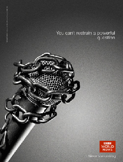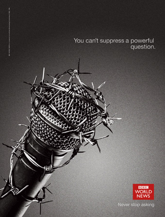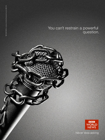 Молчание - знак политика. BBC World News ставит власти в тупикКанал BBC World News запустил международную имиджевую кампанию The Power of Questions (Сила вопросов) о стремлении журналистов искать правду и требовать отчета у власть имущих. В серии клипов мы видим нарезку интервью политиков BBC, которых вопросы ведущих поставили в тупик. В одном ролике с застывшим недоумением на лице появляются Барак Обама, Тони Блэр и Джордж Буш, а во втором репортеры слышат мантру политиков - фразу "No Comments" (Без комментариев). "Никогда не прекращайте задавать вопросы", - призывает слоган кампании, разработанной агентством Red Bee Media.Кроме того, в рамках проекта появились печатная и интерактивная рекламы. Главным визуальным образом стал микрофон, обмотанный колючей проволокой или цепью, как символ свободной, любознательной журналистики. Состав творческой группы: Агентство: Red Bee Media |