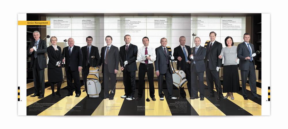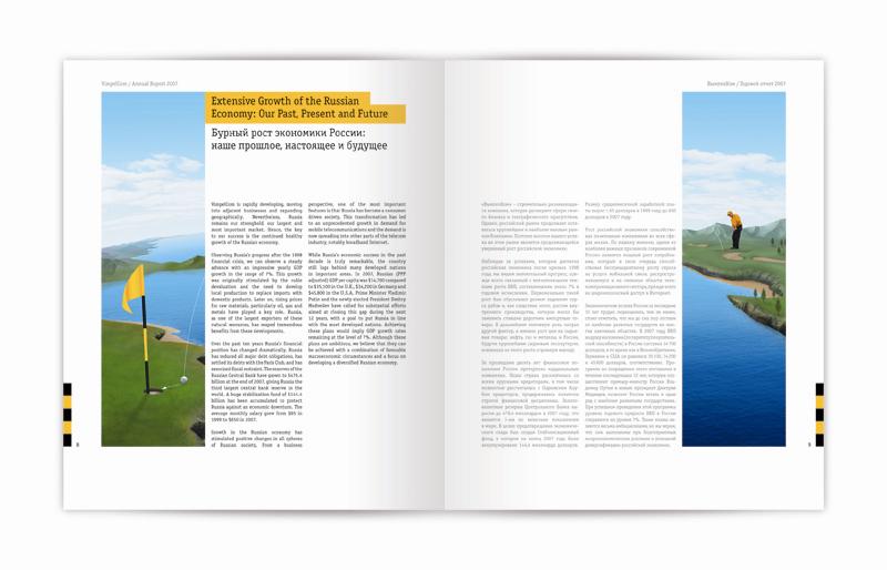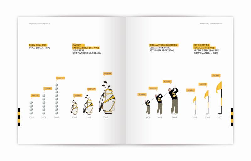"Два Товарища" подружились с "ВымпелКомом"22 октября 2008 состоялась первая церемония награждения лучших IR специалистов и компаний России и стран СНГ, организованная журналом IR Magazine Russia and CIS при поддержке авторитетного международного издания IR Magazine. "ВымпелКом" стал победителем сразу в трех номинациях: "Лучший годовой отчет/корпоративная литература", "Лучшее корпоративное управление" и "Наибольший вклад в IR компании со стороны Генерального директора".Концепцию годового отчета разработала дизайн студия "Два товарища". Идея заключалась в демонстрации динамичного развития компании через игру в гольф - игру успешных, стабильных людей, обладающих аналитическим складом ума и точными действиями. Еще одной находкой креативной группы стало оформление отчета фотографиями руководства компании с аксессуарами для игры в гольф. Для этого была организована фотосессия, в которой принял участие весь основной состав топ-менеджеров. Состав творческой группы Клиент ОАО "ВымпелКом" Маринэ Бабаян - Заместитель директора по международным связям и отношениям с инвесторами Студия "Два товарища" - дизайн Инесса Иванова - руководитель проекта Алексей Антонов - фотограф |