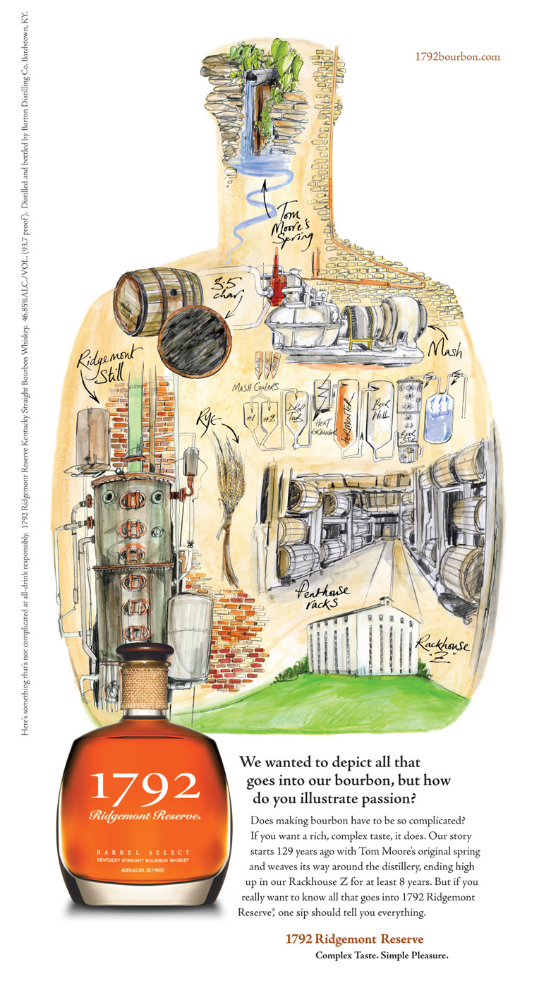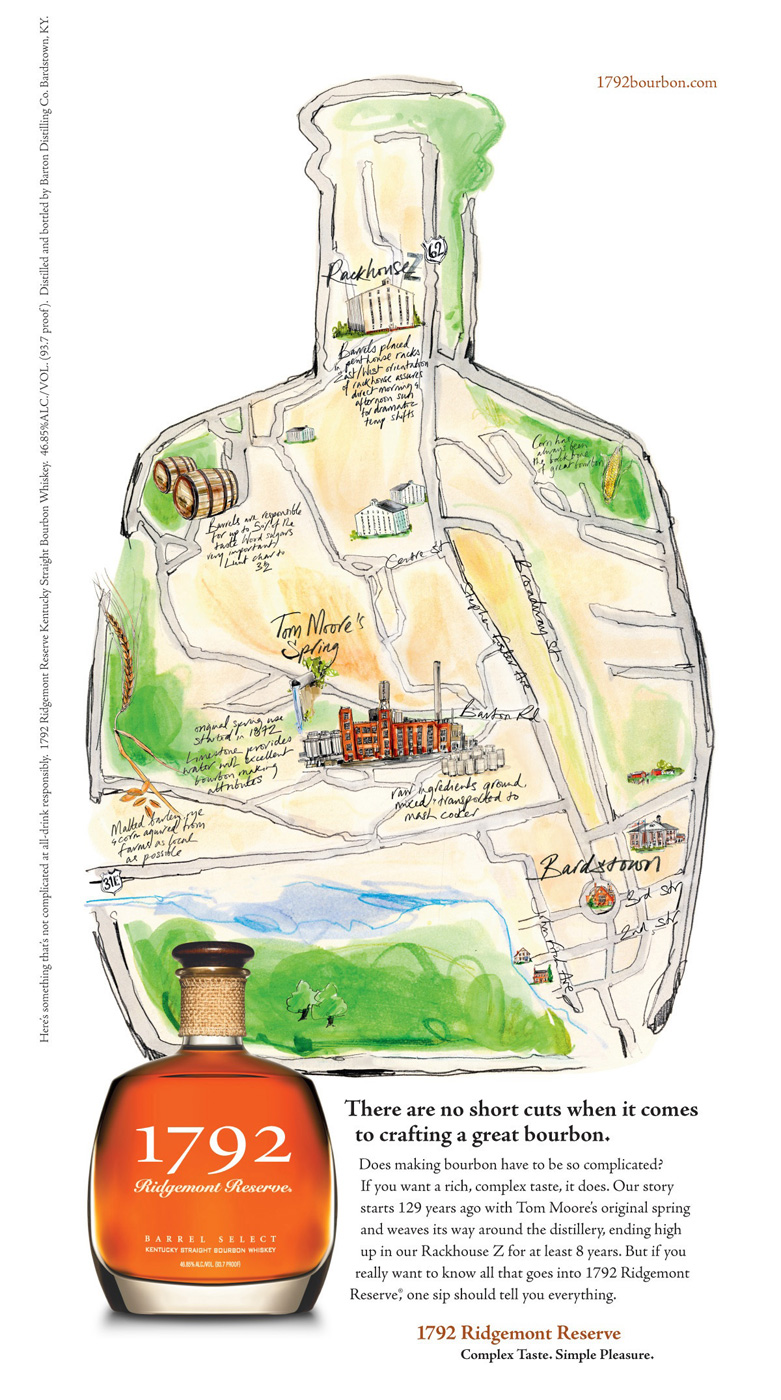 Создание бурбона 1792 Ridgemont Reserve в картинкахEuro RSCG, рекламируя бурбон 1792 Ridgemont Reserve, показывает потребителю, что стоит за восхитительным вкусом этого замечательного напитка. Но если сложного технологического процесса и многолетних традиции не достаточно, один маленький глоток расскажет потребителю все.Когда речь идет о создании восхитительного бурбона - короткие пути неприемлемы Агентство: Euro RSCG, Chicago, USA Копирайтеры: Paul Janas, Matt Dimmer Иллюстратор: Jane Webster Фотограф: John Schulz |