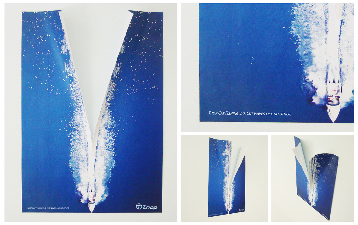 Рыбацкий катер Thop режет не только воду, но и бумагуБразильское агентство Bronx предложило оригинальную идею для новой рекламной кампании моторного катера Thop Cat Fishing 3.0. Эта лодка предназначенная как для морских прогулок, так и для рыбалки. Она имеет длину 7,3 метра и специальные съемные отсеки для пойманной рыбы.Постер, разработанный креаторами Bronx, предназначен для размещения на стенах. Он создает ощущение того, что волны буквально рассекают лист на 2 части. О чем и говорит слоган на: "Режет волны как никто другой". Агентство: Bronx, Куритиба, Бразилия Творческий директор: Alexandre Silveira Арт-директор: Keith Lauer Копирайтер: Fabio Duarte |