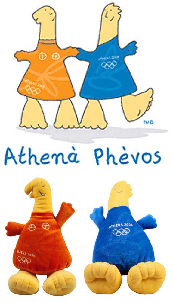 Игры XXVIII Олимпиады 2004, Афины: античные куклы Фивос (Феб, Апполон) и Афина.