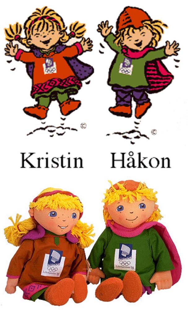 XVII зимние Олимпийские игры 1994, Лиллехаммер: фольклорные куклы Хакон и Кристин. Мальчик и девочка из Норвежских преданий.