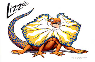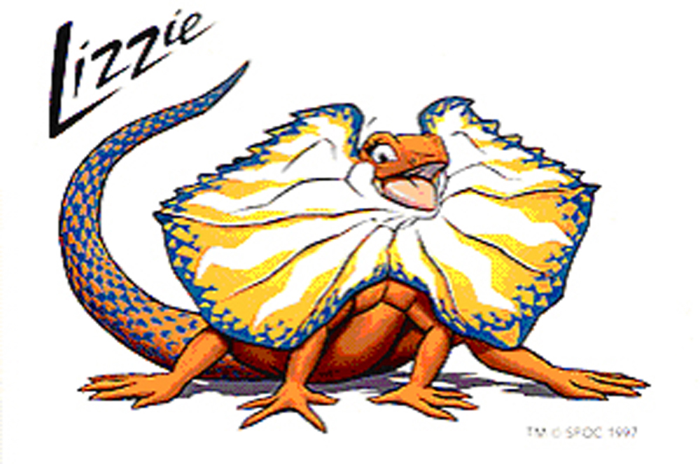 XI летние Паралимпийские игры 2000: плащеносная ящерица Лиззи. Это австралийское животное отличается храбростью, независимостью и умением постоять за себя. Большой воротник ящерицы был сделан в форме карты Австралии.
