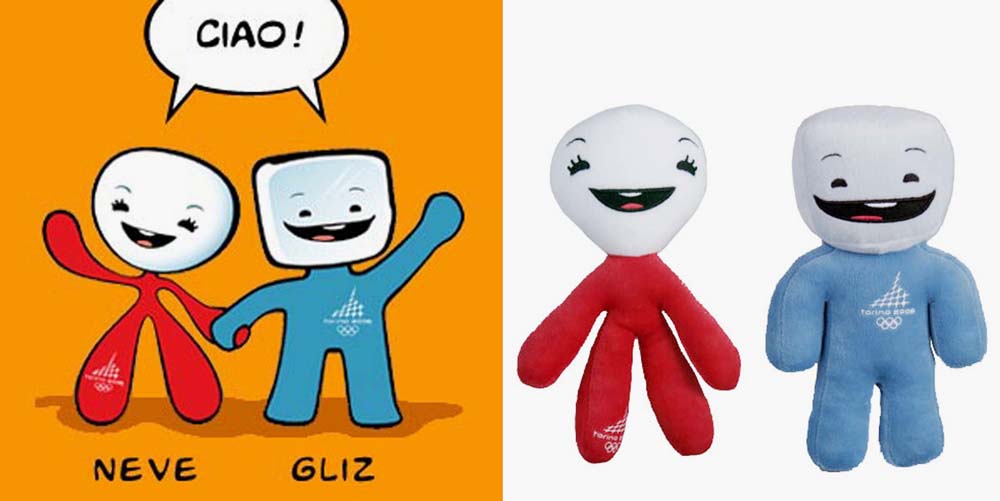 XX зимние Олимпийские игры 2006, Турин: снежок Нив и кубик льда Глиз. Нив и Глиз отражают посылы итальянских олимпийских игр: страсть, энтузиазм, культуру, элегантность и любовь к окружающей среде и спорту. Они являются символами молодого поколения, полного жизни и энергии.