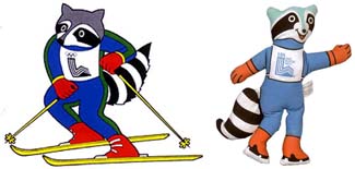 XIII зимние Олимпийские игры 1980, Лейк-Плэсид: енот Рони. Раскраска его мордочки напоминает защитные очки и шапку, которые носят спортсмены, занимающиеся зимними видами спорта.