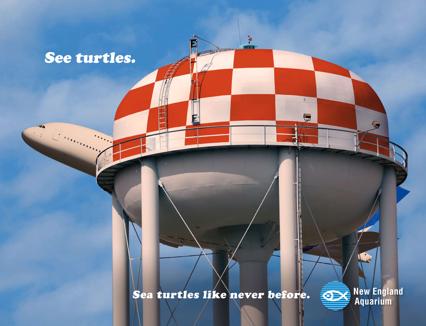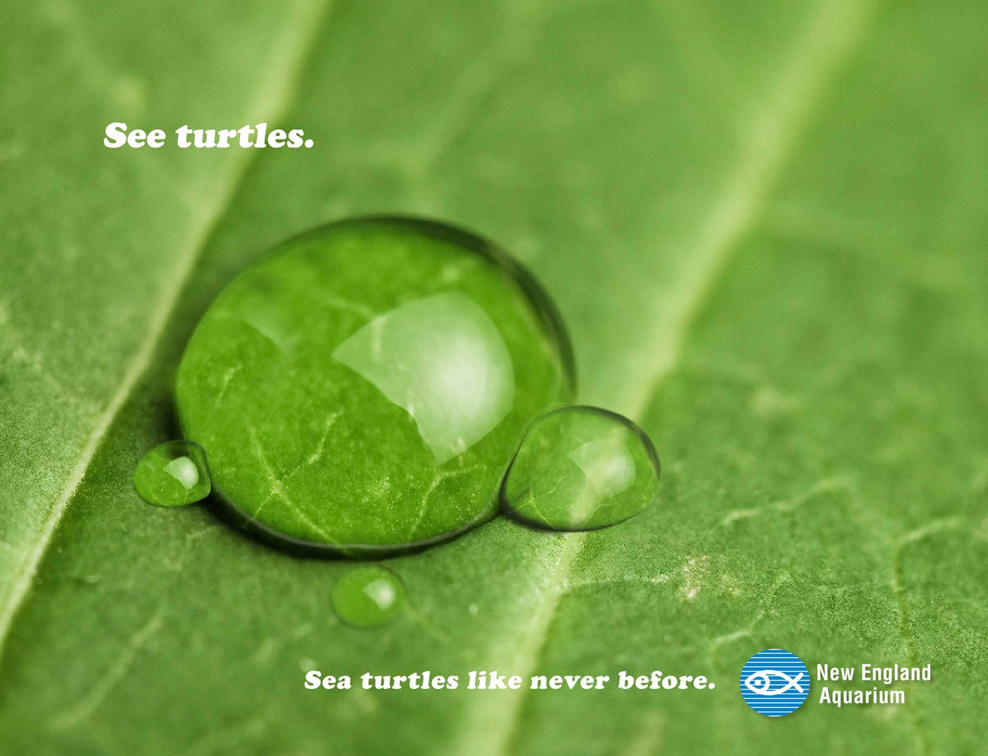 New England Aquarium предлагает посмотреть на черепахНовый Английский Аквариум (New England Aquarium), расположенный в Бостоне, предлагает вниманию своих посетителей новую удивительную выставку, посвященную морским черепахам. Креаторы из американского рекламного агентства Mullen Wenham утверждают, что такого еще не видел никто, и предлагают представить себе эффект, который может оказать выставка, разглядев образ черепахи во взлетающем самолете или каплях воды.Слоган: "Увидь черепах. Морские черепахи как никогда прежде." Агентство: Mullen Wenham, США Главный творческий директор: Mark Wenneker Творческий директор: Jim Amadeo, Edward Jendrysik Арт-директор: Bo Deng Копирайтер: Sarah Sumner Дизайнер: Chris Pinkham Фотограф: Getty Images Ретушь: David Onessimo Пост-производство: Mark Danish |
