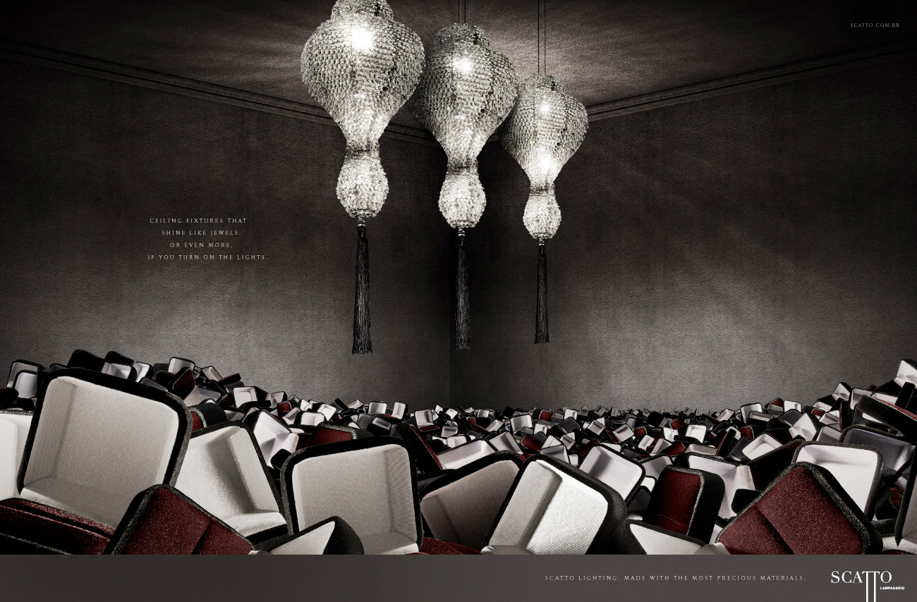 Бриллианты на вашем потолке от Scatto LightingКреаторы из бразильского рекламного агентства Filadelfia, Belo Horizonte опустошили тысячи коробочек с драгоценностями ради одной единственной цели - показать, насколько великолепны потолочные устройства от компании Scatto Lighting. Рекланый принт уверяет, что Люстры Scatto сияют сильнее и ярче, чем самые чистые бриллианты.Слоган: "Потолочная фурнитура, которая сияет как драгоценности. Или даже больше, если вы включите свет." Агентство: Filadelfia, Belo Horizonte, Бразилия Творческий директор: Dan Zecchinelli Арт-директор: Marcio Doti Копирайтер: Leandro Neves Фотограф: Nelo Aun Ретушь: Aderson Fagundes |