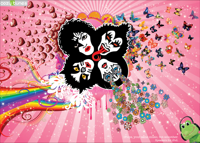IFlops превращает рок в плюшевые игрушкиРекламная кампания IFlops, колонок для Ipod в виде мягких игрушек, представляет потребителю обложки легендарных дисков, измененные в соответствии с концепцией позиционирования продукта, и акцентирует внимание на том факте, что благодаря IFlops звучание любимых треков стало мягче.IFlops, все та же музыка, но более мягкая Агентство: La Argolla, Costa Rica Копирайтер: Paulo Chacin Арт директор: Edgar Mora |