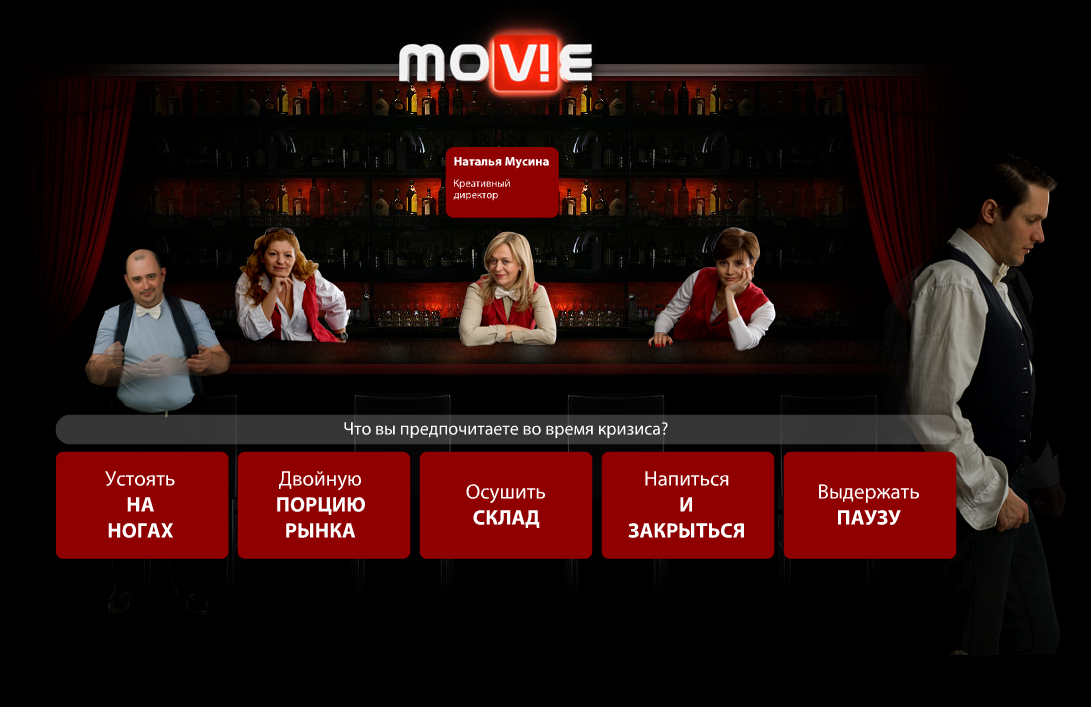 MOVIE открыло "Антикризис бар"Чтобы помочь другим реализовать свои планыРекламным агентством MOVIE разработаны программы, которые состоят из специального набора рекламных инструментов, с помощью которых компании могут быстро и эффективно начинать реализовывать собственные антикризисные планы. "Программы не являются готовыми стратегиями выхода из кризиса, - рассказывают в агентстве. - Так как. агентство не ставило перед собой влезать на территории клиентов, поучать их - они всегда лучше знают проблемы - свои и своих категорий". Программа первая: "Устоять на ногах" Одна из распространенных сейчас стратегий бизнеса строится на защите тех позиций, которые удалось обрести в спокойные времена. Что в нее включено? Креатив, разработанный на основе самых насущных потребностей и инсайтов. Быстро - несколько дней, а не недель. Размещение: в быстрых СМИ и с помощью быстрого планирования: Интернет, пресса, радио. В наиболее соответствующих задаче и аудитории сочетаниях. По каждому из СМИ - не набор стандартных видов и форматов, а именно те, что будут лучше других работать на целевую аудиторию кампании. При этом, понимая, что рост продаж зачастую должен быть поддержан на местах продаж, эта программа подразумевает идеи, легко интегрируемые в BTL-активности. Клиенты получают разработанные кампании уже через неделю и с минимальными затратами. Программа вторая: "Двойная порция рынка" Программа "3-в-1": стратегия + креатив + медиа. Стратеги создают интегрированный коммуникационный план по захвату намеченных "территорий" и потребительских сегментов, выделяют ключевые целевые аудитории, их мотивацию и методы воздействия на них, выстраивают приоритетность рекламных сообщений, действий и каналов, изобретают новые методы работы с аудиторией. Креатив разрабатывает творческие решения, а медиа предлагают наиболее соответствующие носители. Может сочетать в себе быстрые, тактические кампании с более длительным воздействием и потому, более охватными СМИ (к примеру, ТВ). Поскольку задачи и способы их решения в рамках подобных атакующих стратегий могут быть очень разными, говорить здесь о минимальных сроках разработки и реализации, а также о стоимости будет непрофессионально и нечестно. Строится на комплексном подходе. "Это основные программы, на наш взгляд, наиболее востребованные на сегодняшний день, - считают в MOVIE. - Есть и другие, ориентированные на более долгосрочные стратегии компаний. Все они разрабатываются на основе серьезного изучения планов, задач и действий наших клиентов - существующих и будущих, и являются по-настоящему оперативными и действенными". |