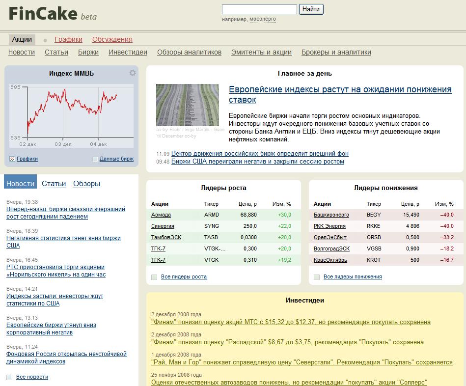 "Эксперт" для непрофессионаловМедиахолдинг запустил портал о личных финансах FinCakeМедиахолдинг "Эксперт" открыл проект FinCake. Портал рассчитан на непрофессиональную аудиторию, которая интересуется управлением личными финансами. Сообщается, что пока запущена лишь бета-версия первого из разделов FinCake - "Акции". Портал призван стать площадкой для общения не только пользователей между собой, но и представителей профессиональных участников рынка со своими потенциальными и действующими клиентами. Дизайн сайта выполнен Студией Артемия Лебедева. Как сообщают в "Эксперте", вскоре добавятся другие разделы, которые будут освещать все необходимые для управления личными финансами темы: валюты, инвестиционные фонды, облигации, депозиты, кредиты, страхование, недвижимость, налоги, финансовое планирование и другие. Сервисы сайта будут запускаться постепенно, по мере их готовности. "Перед нами стоит задача сделать мультитематический нишевый портал, - говорит главный редактор FinCake Евгения Смоленская. - Со временем на нашем портале пользователь сможет попробовать поуправлять своими финансовыми ресурсами виртуально, примерить те или иные финансовые продукты на себе, понять, хватает ли ему знаний и времени, чтобы воспользоваться теми или иными предложениями рынка". По словам госпожи Смоленской, сегодня в рунете присутствуют много сайтов, посвященных фондовому рынку, страхованию, кредитам и депозитам, однако их разрозненность не дает возможности конечному пользователю сформировать комплексный подход к ведению своих финансов. |