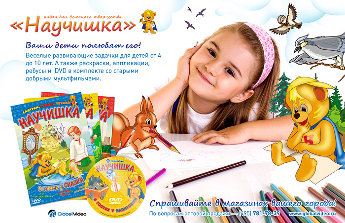 "Бюро Пирогова" будет развивать детейРекламное направление "Бюро Пирогова" запускает кампанию в поддержку детского развивающего журналаС 1 декабря стартовала семинедельная рекламная кампания нового детского развивающего dvd-журнала от производителей - компании "Глобал Видео". Главным героем акции является разработанный фирменный персонаж "Мишка-Научишка". В кампании задействованы интернет порталы-лидеры для родителей и их детей, интернет-магазин игрушек, печатный журналы "Лиза. Мой ребенок", "Веселые картинки" а также профессиональное издание для дистрибьюторов видеопродукции "Видеомагазин". Целью является популяризация нового детского развивающего dvd-журнала на книжном и видео-рынках. Кампания включает редизайн главной страницы сайта, создание и размещение в интернете баннерной сети, написание и публикация статей и интервью, модульную рекламу, скрытый маркетинг на популярных форумах. По результатам рекламной кампании "Бюро Пирогова" планирует получить охват целевой аудитории:
