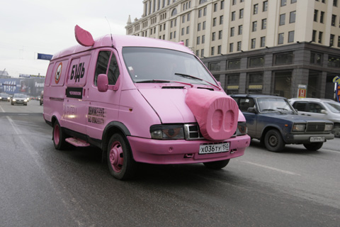 "Движение без опасности" пустило по московским улицам свиномобиль5 декабря 2008 года на Садовом Кольце в Москве проходила акция, призванная привлечь внимание водителей к проблеме отсутствия культуры поведения на дорогах.Акция была частью социальной кампании "Движение без опасности", разработанной агентством "Естественно" (Media Arts Group) по заказу ГИБДД. Раскрашенный розовым цветом автомобиль с бутафорским пятачком, розовыми ушками и хвостиком крючком с призывной надписью "Будь человеком!" на борту мгновенно привлекал внимание прохожих и водителей. Некоторые успевали доставать мобильные телефоны и фотографировали "свиномобиль". Участники акции раздавали водителям проезжающих машин ароматизаторы и футболки и приклеивали на лобовые стекла припаркованных автомобилей наклейки все с той же надписью "Будь человеком!". Призыв нашел отклик среди водителей. Некоторые останавливались и делились впечатлениями, одобряли проведение акции, говорили, что ситуация на российских дорогах такова, что уже давно надо предпринимать самые решительные действия. Наталья Агре, генеральный директор агентства "Естественно", говорит, что разработке пропагандистских мероприятий предшествовала масштабная исследовательская работа, были опрошены более 15 000 россиян, практикующих вождение не реже 1 раза в неделю. "Мы заметили парадоксальную ситуацию, - обращает внимание Наталья Агре, - 70% опрошенных указали, что "подрезать" или "притирать" на дорогах недопустимо. Однако, при этом, всего 42% в действительности никогда "не подрезали" и "не притирали" другие автомобили на дорогах". Мнение эксперта подтвердил и случайный участник акции, который обнаружил на лобовом стекле своего джипа агитационную наклейку. Мужчина аккуратно переклеил ее на заднее стекло и похвалил организаторов акции. "Люди вообще очень положительно воспринимают мероприятия по нормализации ситуации на дорогах, в отличие от так называемых "профессионалов", - продолжает Наталья Агре, - Наши социальные ролики, вызвавшие бурю дискуссий на рекламных форумах, более 56% рядовых соотечественников одобряют, а более 63% признались, что они изменили их отношение к той или иной проблеме безопасности движения. В то время, как данные статистики свидетельствуют о снижении травматизма в ДТП в городах, где социальная кампания проходила интенсивно, руководство центральных телевизионных каналов не в состоянии принять решения об их размещении в своем эфире. Приятным исключением стали каналы РТР, Вести-24 и ДТВ. На РТР в частности сейчас демонстрируется ролик, посвященный как раз проблеме культуры поведения на дорогах". |
