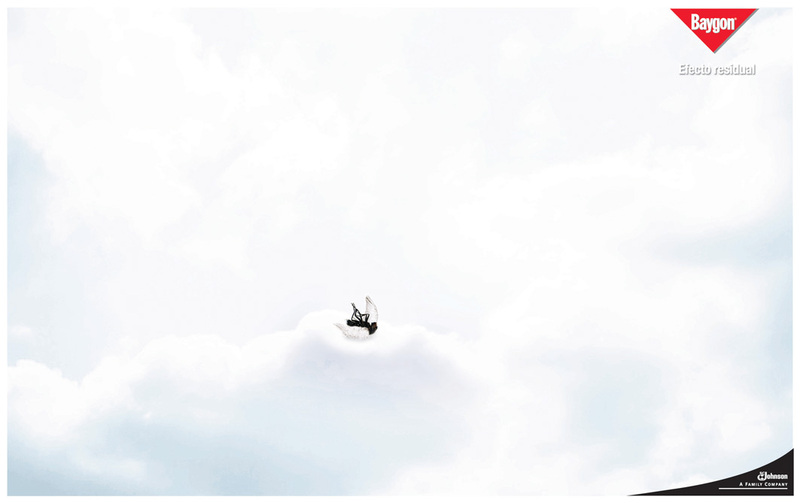 Baygon отправляет насекомых на небесаБлагодаря креативу от Mayo Draft FCB и инсектициду Baygon от S. C. Johnson & Son мухи, тараканы, муравьи, докучающие домохозяйкам, окажутся на небесах.Слоган: Остаточный эффект Агентство: Mayo Draft FCB Креативный директор: Carlos Serrano Арт директор: Alejandro Mu?oz |