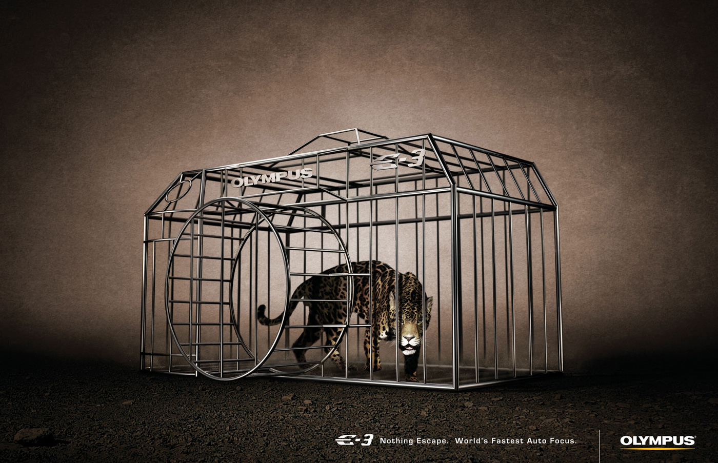 Гепард, плененный Olympus E3Для чего нужен самый быстрый в мире автофокус? Все очень просто - для того, что бы ни один интересный кадр не остался без вашего внимания. Гепард, заключенный в клетку-фотоаппарат символизирует выдающиеся технические характеристики Olympus E3, с помощью которых фотограф может запечатлеть даже самое быстрое животное.Агентство: Turn Creative Креативные директора: Tony Hon, Stephen Chan Арт директор: Wai Копирайтер: Tony Hon Фотограф: Sandy Lee |
