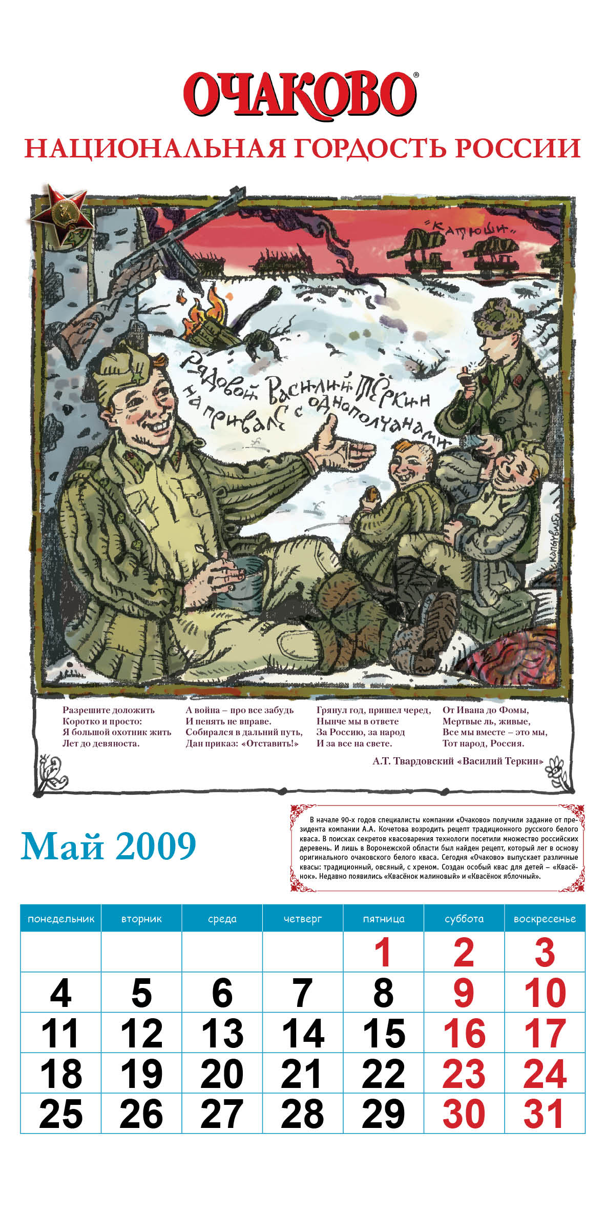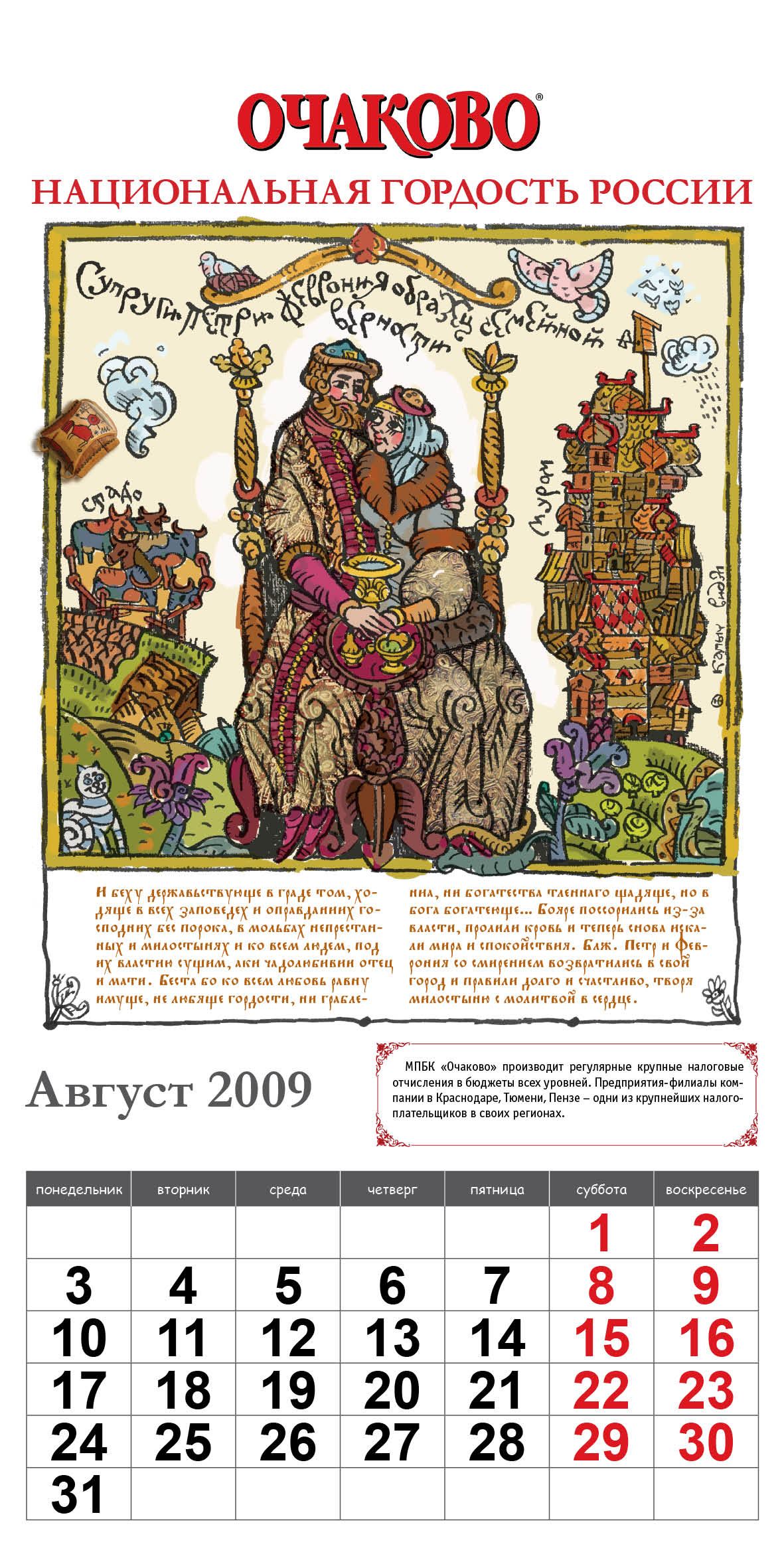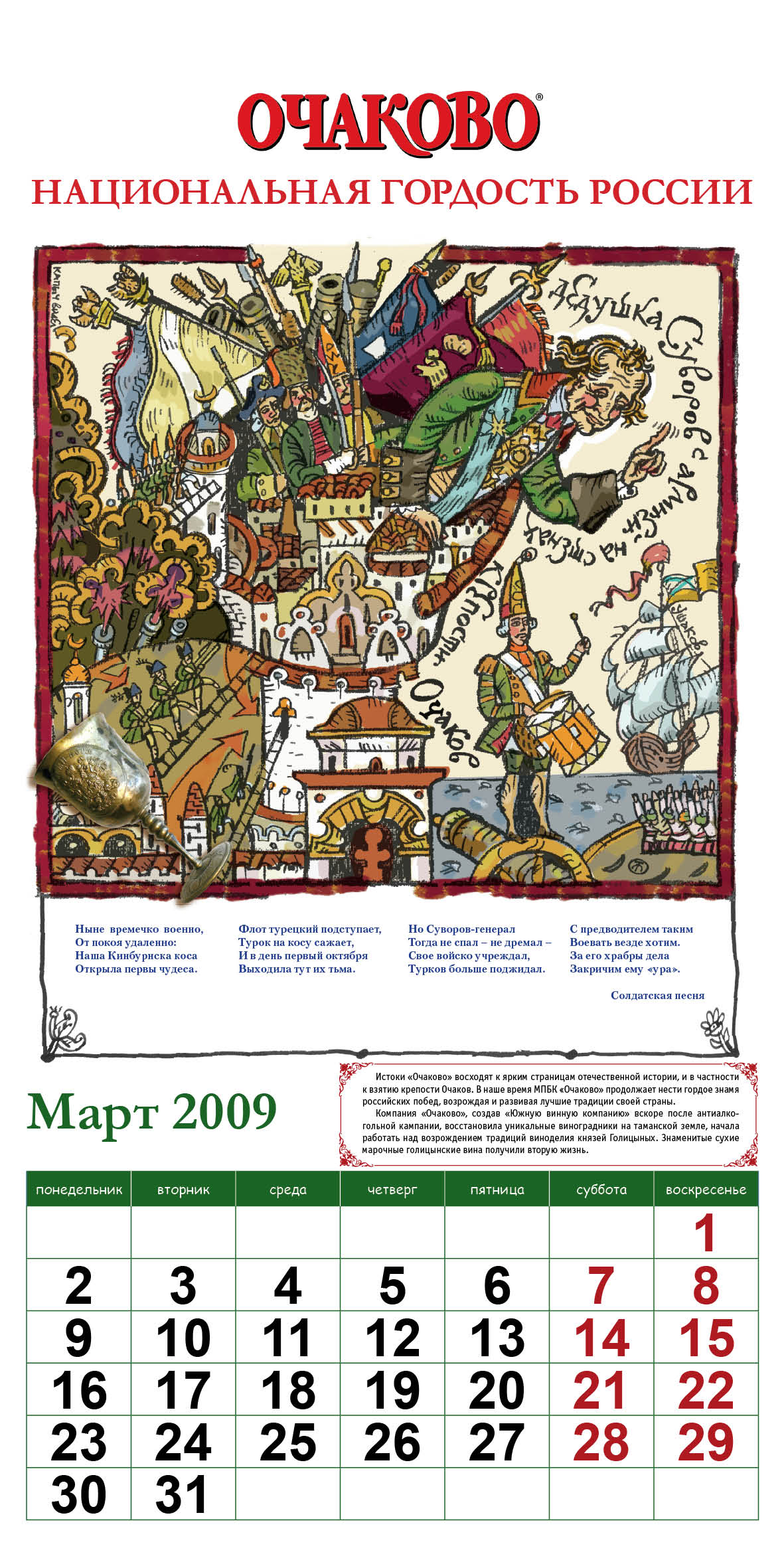 Добрыня Никитич и Юрий Гагарин - герои "Очаково"Компания "Очаково" выпустила календарь "Очаково. Национальная гордость России" для сотрудников и партнеров компании.Основная идея календаря - продолжение славных русских традиций и возрождение исконно русских напитков компанией "Очаково". Стиль, в котором календарь выполнен - ассоциативное рисование, основанное на национальных русских традициях и фольклоре. Оно несет в себе современные социальные тенденции, а также новое звучание русских традиций в искусстве и в восприятии современного человека. "Мы продолжаем реализовывать концепцию национального традиционализма, которая уже была отражена в книге стихов "Народный квас "Очаковский"". Эта идея позволяет отразить позитив и инновационность, которые несет в себе наш бренд", - рассказала руководитель пресс-службы компании "Очаково" Елена Петлина. Состав творческой группы Разработка идеи: пресс-служба компании "Очаково". Художник: Капыч. Создание макета и верстка: РА "Ателье Вентура". Пресс-служба МПБК "Очаково" |