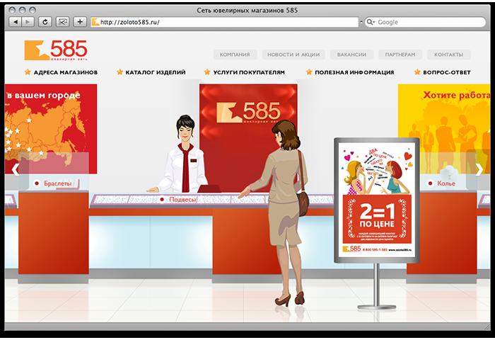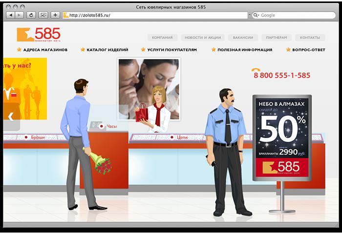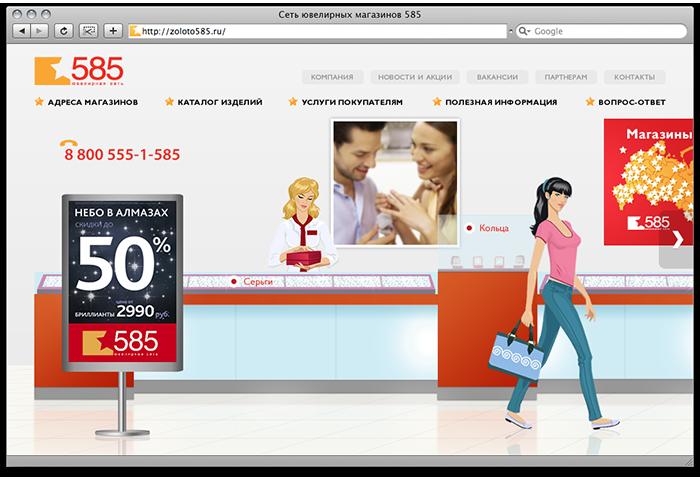 DDC Creative Lab и "585" представили новый сайт ювелирной сетиКреативное агентство DDC Creative Lab разработало сайт для компании "Ювелирная сеть "585" - лидера в области розничной торговли ювелирными изделиями.Новый сайт компании сочетает промо-концепцию главной страницы и функциональность, информационную насыщенность внутренних страниц. В качестве визуального решения главной страницы агентство предложило заказчику идею изображения реального магазина ювелирной сети, с узнаваемым интерьером и анимированными персонажами - сотрудниками и посетителями. Таким образом, посетитель сайта движется по залам "магазина" и может легко найти интересующие его товары и всю необходимую информацию о компании. Элементы интерьера online-магазина (лайтбоксы, стеллажи, карта России, рекламные плакаты) являются ссылками на внутренние страницы: новости и акции компании, разделы каталога изделий, адреса магазинов сети, вакансии компании. Каталог компании содержит более 500 изделий, с возможностью сортировки по товарным группам. Интерактивная карта регионов России позволяет быстро найти любой из магазинов сети, расположенных в более чем 160 городах страны, узнать его точный адрес, режим работы и другую подробную информацию. Состав творческой группы Агентство DDC Creative Lab, Санкт-Петербург: руководитель проекта - Максим Данильян; аккаунт-менеджер - Ольга Хитрина; арт-директор - Игорь Мосьпанов; дизайнеры: Алексей Зинченко, Дмитрий Ёлкин; аниматор - Альберт Галимов; копирайтер - Антон Борисов; программист - Алексей Исавнин; технический дизайнер - Леонид Беликов. Ювелирная сеть "585": руководитель отдела маркетинга - Нина Хорош; маркетолог - Татьяна Васильева. |