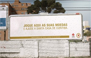Бразильский госпиталь Santa Casa de Curitiba в своей outdoor-кампании использовал магнитные билбордыБразильский госпиталь Santa Casa de Curitiba (Куритиба, штат Парана) провел необычную outdoor-кампанию. Ее цель – сбор денежных средств для закупки нового медицинского оборудования и ремонта здания госпиталя, которое является историческим и архитектурным памятником.Необычным в этой акции были рекламоносители – магнитные билборды. Любой желающий помочь госпиталю может просто примагнитить несколько монет к поверхности рекламного щита.