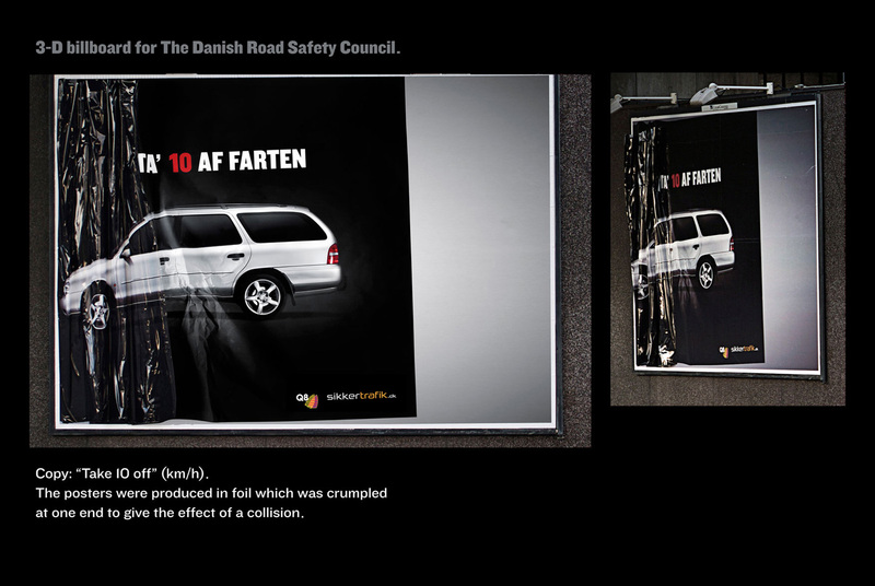 Помятые биллборды для Датского Министерства Безопасности Дорожного ДвиженияРекламное агентство The Aid Agency, расположенное в Копенгагене, создало очередную социальную кампанию для Датского Министерства Безопасности Дорожного Движения (Danish Road Safety Council). В прошлом году креаторы этого агентства уже представляли ЦА детальное описание аварии и возможности для ее предотвращения. В этом же году на улицах Дании появятся трехмерные биллборды, смятые с одного конца, что делает их похожими на автомобили, побывавшие в аварии.Агентство: The Aid Agency, Копенгаген, Дания Творческий директор: Andrew Smart Арт директор: Andrew Smart, Rasmus Sigvaldi Копирайтер: Andrew Smart, Rasmus Sigvaldi, Niels Heilberg Фотограф: Henrik Jauert |