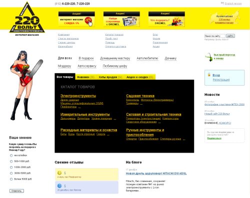 Специалистами WebMaster.Spb была произведена полная интеграция интернет-магазина с базой данных заказчика - теперь на сайте более 4 тыс. товаров. К большинству товаров покупатель может выбрать сопутствующие товары или посмотреть, что чаще всего с этим товаром покупают. «Для покупателя это удобный инструмент поиска, для магазина «220 Вольт» – дополнительный стимулирующий канал продаж. Развлечься в процессе выбора посетителям сайта помогут «перлы покупателей» — своего рода bash про электроинструменты, а также флэш-игры», - комментируют в компании.
