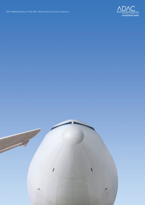 Самолеты благодарят пассажиров, только у ADACADAC (Abu Dhabi Airports Company) совместно с РА TBWA выпустили кампанию, посвященную празднованию 37-ой годовщины образования ОАЭ, в которой говорят зрителю о том, как они гордятся своей работой. Для этого был выбран образ авиалайнера, который с помощью крыла приветствует пассажиров.Агентство: TBWA\RAAD\Abu Dhabi, UAE Копирайтер: Martin Lever Арт директор: Sherif Galal |