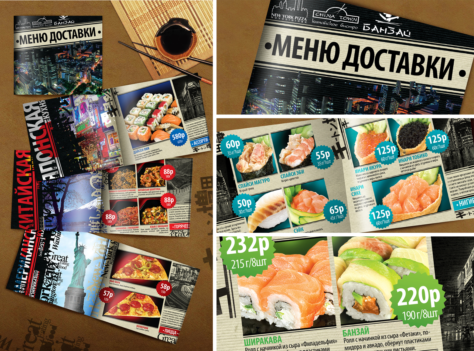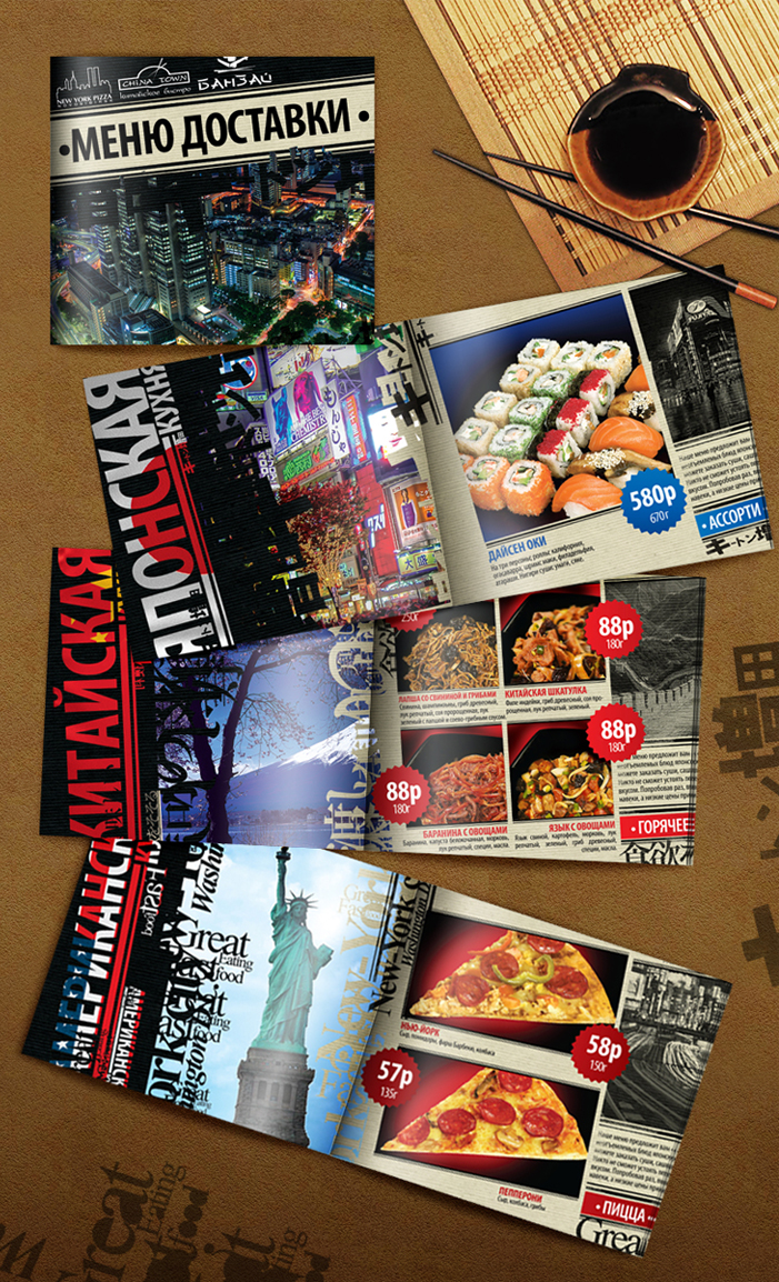 "Смешать, но не взбалтывать!"Брендинговое агентство "PIONT" для компании "Ресторатор" Брендинговое агентство "PIONT" спроектировало дизайн буклета доставки для компании "Ресторатор", объединяющий кухни трех стран: Япония, Китай, Америка.Задача: 1) Создать запоминающийся и удобный в использовании буклет, стилистика которого допускала развитие в сопроводительную полиграфию для ресторанов компании "Ресторатор". 2) Гармонично совместить разные культуры, кухни и стили в одном издании при этом сохранив уникальность и колорит каждой. 3) Благодаря правильно спроектированной визуализации добиться необходимых стереотипных образов в восприятии целевых аудиторий. Творческим коллективом Брендингового агентства "PIONT" было разработано нескольких семантических схем, раскрывающих дух кухонь Китая, Японии и Америки. Аудит визуальных идентификаторов и тестирование концепций показали, что наиболее интересным, ярким и результативным получился современный образ, раскрывающийся через понятные каждому Состав творческой группы: Дизайн - Игорь Кривоногов, Владимир Зянкин Маркетинг - Дмитрий Слюсарев Руководитель проекта - Владимир Зянкин |