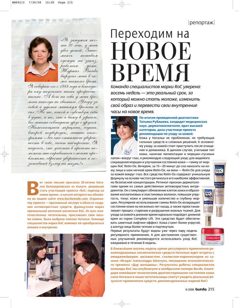 RoC завершил проект, стартовавший летом в глянцевых журналахВ конце декабря премиальная марка аптечной косметики RoC, специализирующийся на антивозрастной продукции, завершила проект, стартовавший летом в глянцевых журналах, наиболее значимых для целевой аудитории бренда: Burda, Лиза, Добрые Советы, Домашний Очаг, Женские Секреты, Здоровье, Самая и Биография.Высокий уровень конкуренции косметических брендов в категории антивозрастных средств на фоне перегруженности рекламой глянцевых журналов, задает высокую планку качеству коммуникации с потребителем и требует инновационных подходов и ярких решений. Реализованная кампания отражает новаторский подход бренда к решению маркетинговых задач. Основная цель этого проекта - продемонстрировать эффективность воздействия средств марки на внешние признаки старения кожи через персональные истории реальных женщин - читательниц ведущих глянцевых журналов. Уникальность проекта прежде всего в том, что это первая масштабная кампания марки антивозрастных средств, базирующаяся на общей идее использования результатов применения средств реальными женщинами в режиме реального времени. Действительно, формат "До" и "После" очень часто используется косметическими брендами в коммуникации, в том числе и в спецпроектах для глянцевых журналов, и, казалось бы, в этом нет ничего нового. Однако это не совсем так. Маркетинговые задачи определили концепцию кампании, которая основывалась на глубоком понимании чувств и эмоций целевой аудитории. Ведь как показали фокус -группы, женщины не хотят выглядеть значительно моложе, они ценят свой возраст и то, чего им удалось достичь. Они просто стремятся к тому, чтобы отражение в зеркале соответствовало их внутреннему миру. И главная проблема скорее в том, что в круговороте бытовых и семейных обязанностей не каждая женщина находит достаточно времени для ежедневного ухода за собой. Проект реализовывался в несколько этапов. Анонс проекта с предложением стать его участницей появлялся на страницах журналов и на их сайтах. Совместными усилиями редакция и команда бренда выбирали кандидатуры по письмам и фото, отправленным в редакцию. Несмотря на жесткие временные рамки подачи номеров в печать, проект реализовывался в режиме реального времени. Сначала готовился макет "До": участница проходила диагностику кожи и получала курс рекомендаций по использованию продукции RoC на 8 недель. Именно за 8 недель средства марки RoC обещали потребителю видимые результаты в борьбе с возрастными изменениями. Через 8 недель снимался контент для макета "После". Результат, полученный участницами, оценивал не только эксперт марки, но и специальная аппаратура, позволяющая зафиксировать изменения. Предложенная интерактивная механика позволила получить качественные PR публикации по бренду, а реальные изменения и позитивные впечатления участниц явились самой важной эмоциональной составляющей проекта. Так, проект вызвал интерес не только потребителей, но и редакций. Редактор одного из изданий сама вызвалась принять участие в проекте и появилась в качестве героини на страницах собственного журнала, что только повысило уровень доверия потребителей. Успешно стартовавший на российском медийном рынке проект "RoC: переход на Новое время" будет реализован также на Украине. |