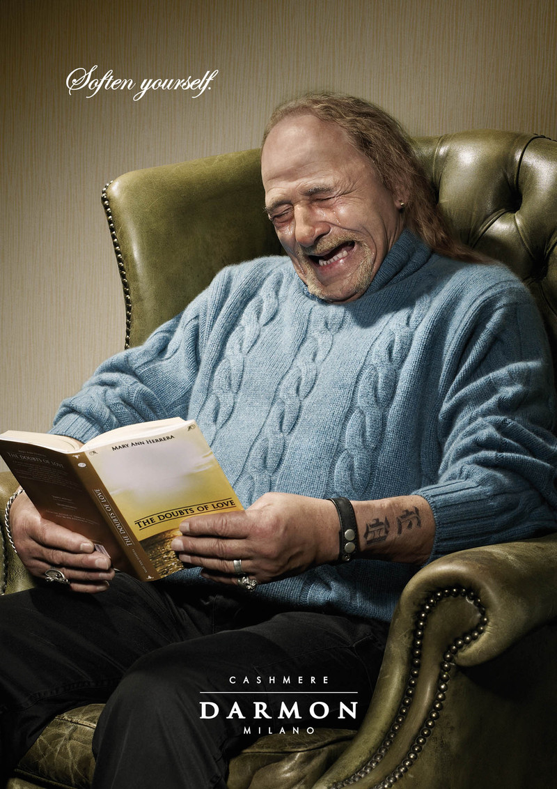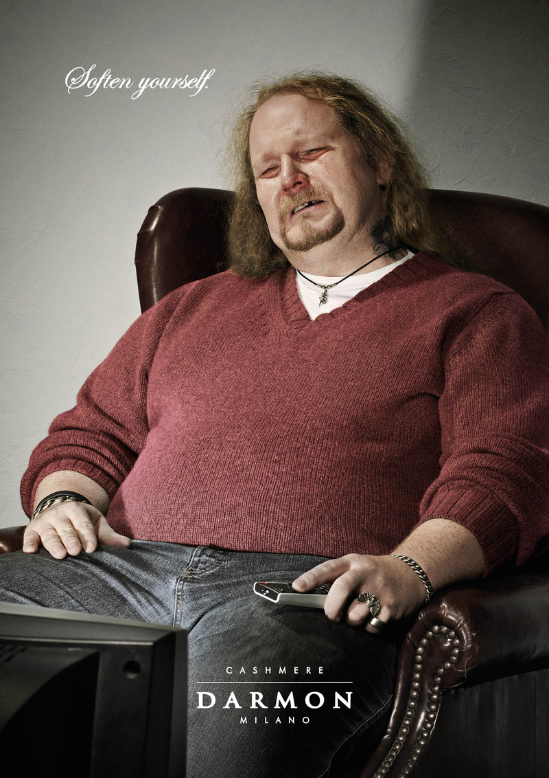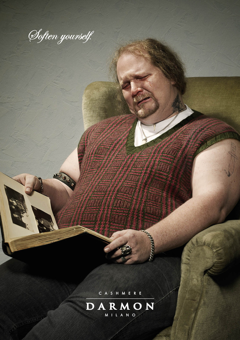 Darmon Cashmere вновь играет на чувствах суровых мужчинИтальянские креаторы из миланского агентства 1861 United в прошлом году уже представляли вниманию общественности рекламную кампанию для одежды из кашемира марки Darmon. Связь нежных мягких свитеров и суровых мужчин прослеживается и в новой серии принтов, недавно выпущенных этим же агентством. Однако на этот раз креаторы решили преподнести продукт более красочно. Теглайн: «Смягчись». Агентство: 1861 United, Милан, Италия |