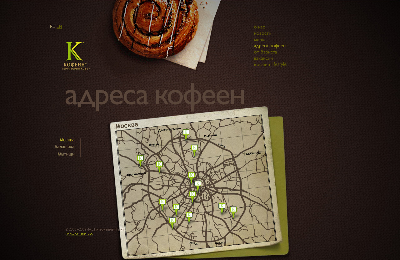 Интернет подсадят на "Кофеин"В начале 2009 года московская сеть кофеен "Кофеин" запустила сайт. Адрес сайта: www.koffein.ru. Сайт был разработан творческой группой "План-Б" из г. Ростов-на-Дону. Кроме стильного оформления, сайт получил удобную навигацию. "В связи с агрессивной маркетинговой стратегией сети основной задачей сайта стала максимальная доступность и удобство информирования посетителей портала о новостях, деятельности компании, ассортименте и адресах кофеен" - прокомментировал директор по маркетингу сети кофеен "Кофеин" Житлов Никита.На главной странице можно ознакомиться с несколькими позициями из ассортимента кофеен и узнать последние новости сети. Более подробно изучить ассортимент можно в разделе "Меню". Сеть кофеен проводит множество акций и вводит различные программы лояльности, информация о которых регулярно выкладывается в разделе "Новости". В рамках PR-продвижения сеть "Кофеин" выступает в качестве соорганизатора многих светских мероприятий. С фото-отчётами мероприятий можно ознакомиться в оригинально оформленной рубрике "Кофеин Lifestyle". Любой посетитель сайта может найти ближайшую кофейню с помощью удобной навигационной карты в рубрике "Адреса кофеен". Приветствуя иностранных посетителей, сеть "Кофеин" позаботилась и о функционировании английской версии сайта. Состав творческой группы: Арт-директор - Алексей Бондаренко Дизайнеры - Юлия Лукьянченко, Елена Костырина, Ирина Кожухарова Технические дизайнеры - Михаил Елецкий, Светлана Мамонова Менеджер проекта - Анна Лисовская Бренд-менеджер: Настя Кондюхова |
