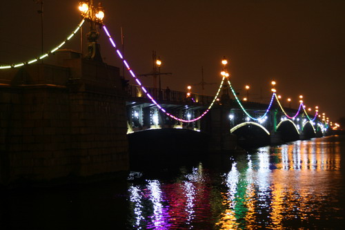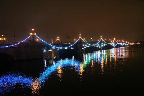 Компания "РПА Сфера", по заказу городской администрации, осуществила работы по праздничной подсветке Троицкого и Гренадерского мостов.