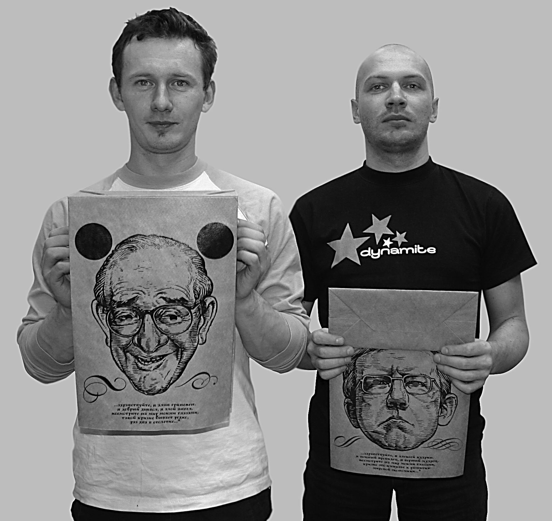 ГринспенКудринБэг - кризис, взгляд изнутриВизуально-коммуникационная группа "ДизайнДепо" разработала идею и дизайн позитивно-антикризисного пост-новогоднего сувенира для адресной рассылки действительным и потенциальным клиентам своей компании.Идею создания этого пакета подарили дизайнерам виднейшие мировые экономисты, которые выдали в самом начале разразившегося теперь уже на весь мир сами-знаете-чего пару парадоксально-неоднозначных высказываний на эту тему. Так, товарищ Гринспен "успокоил" всех, сказав что-то вроде: "Это редкая удача - наблюдать кризис такого масштаба! Такие финансовые потрясения случаются один, от силы два раза в столетие!". Господин Кудрин пошел еще дальше и оптимистичнее: "Кризис - это импульс к развитию мировой экономики!". В "ДизайнДепо" поставили перед собой задачу: попытаться влезть в головы этих двух уважаемых людей и посмотреть на мир их глазами. Реализация: классический бумажный пакет минус ручки плюс изображение вышеупомянутых героев, а также дырки для глаз - для того чтобы начать использовать, необходимо ознакомиться с инструкцией и затем надеть на голову. Авторы считают, что это лучше, чем просто прятать голову в песок. Спрятав голову в ГринспенКудринБэг, можно перестать поддаваться паническим настроениям и начать глядеть на мир с улыбкой и оптимизмом. |