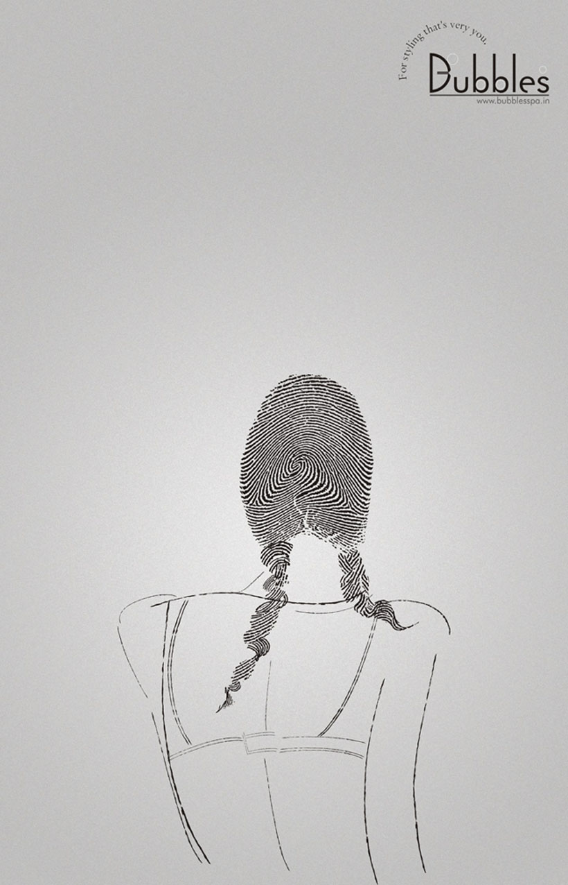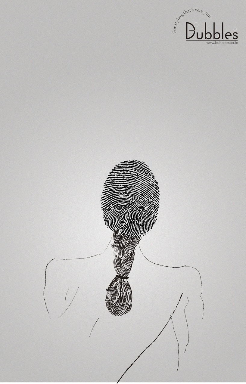 Индивидуальность по версии салона красоты BubblesИндийское агентство Orchard Advertising создало поистине индивидуальный стиль для каждой женщины на новых принтах, созданных по заказу салона красоты Bubbles Hair Salon & Spa, который находится в Ченнае. Отпечаток пальца представляет собой папиллярный узор, который, как известно, является уникальным для каждого человека. Поэтому именно при помощи отпечатков, стилизованных под прически, креаторы стремились показать индивидуальность, которую мастера Bubbles подарят своим клиентам.Агентство: Orchard Advertising, Chennai, Индия Иллюстратор: K. N. Balakrishnan Главный творческий директор: Thomas Xavier Арт-директор: K. N. Balakrishnan Копирайтер: Anantha Narayan Эккаунт-менеджер: Deepan Ramachandran |