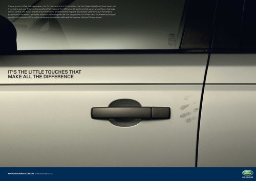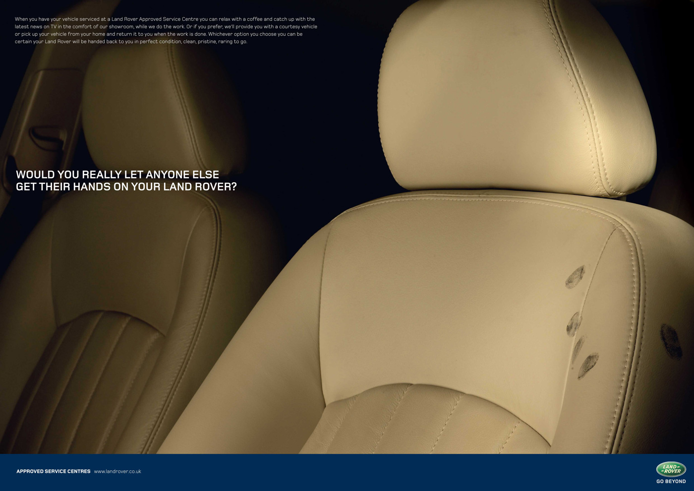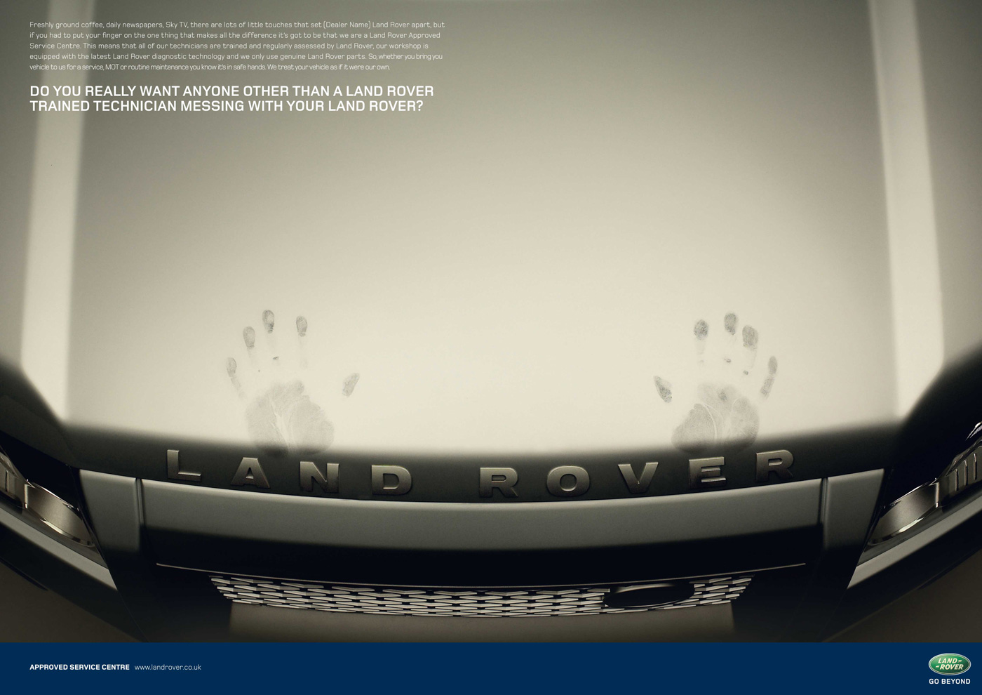 Land Rover ратует за чистоту рук автослесарейКреаторы из английского рекламного агентства Rees Bradley Hepburn, разработавши эту серию принтов утверждают, что только у хорошо обученных специалистов из авторизированных сервисных центров Land Rover гарантированно чистые руки, что показывает их профессионализм и выгодно отличает от неряшливых мастеров-ломастеров из соседнего автосервиса.Слоган: "Вы действительно хотите, чтобы кто-либо кроме специально обученного техника копался в вашем автомобиле Land Rover." "Это всего лишь легкое прикосновение, которое полностью меняет дело." "Вы действительно позволите кому-нибудь другому приложить свои руки в вашему Land Rover." Агентство: Rees Bradley Hepburn, Соединенное Королевство Творческий директор: John Dean Арт-директор: Julian Bird Копирайтер: Keith Dallaway Фотограф: Christian Powell |