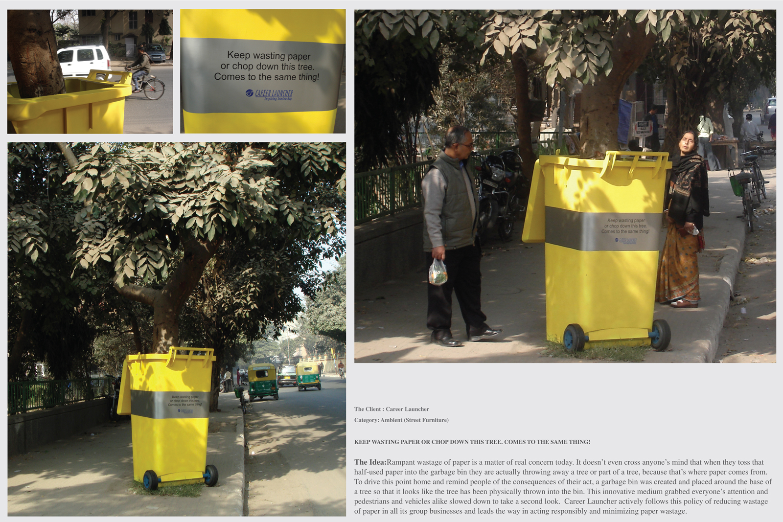 Мусорный бак встал на защиту природыНеобычная аутдор акция от Draft FCB Ulka и Career Launcher вызвала пристальный интерес со стороны прохожих на улицах Дели. Основной задачей акции было напомнить людям о том, что когда они выкидывают в урну смятый косок бумаги, они выкидывают целое дерево или его часть. Для этого был изготовлен специальный мусорный контейнер, после того как его разметили вокруг дерева, у зрителей складывается впечатление, что дерево целиком выбросили в мусорный бак.Продолжайте переводить бумагу или срубите это дерево, результат будет тем же Агентство: Draft FCB Ulka, New Delhi, India Креативный директор: Sanjay Sharma Арт директор: Shubhojit Sengupta Копирайтер: Vikram Sengupta |