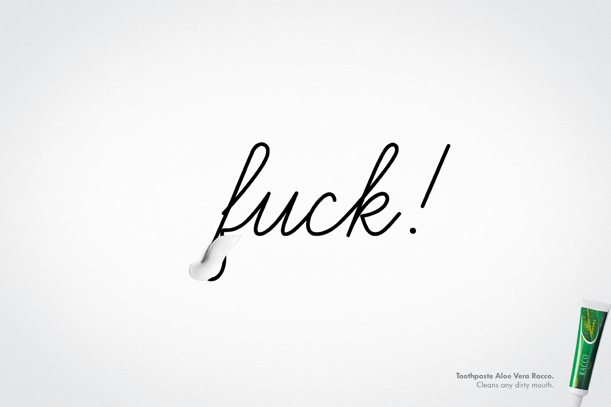 Зубная паста Racco отучает сквернословитьКреаторы из Бразильского агентства By Vivas считают, что зубная паста Racco обладает отличными очищающими свойствами и способна очистить от грязи любой рот. В подтверждение этого нецензурное слово "f**k" элегантным движением тюбика с пастой Racco превратилось в хорошее слово "luck".Чистит любой грязный рот Агентство: By Vivas, Curitiba, Brazil Креативный директор: Marcos Steffens Арт директор: Alessandro Vieira Копирайтер: Fabrizio Pitz |
