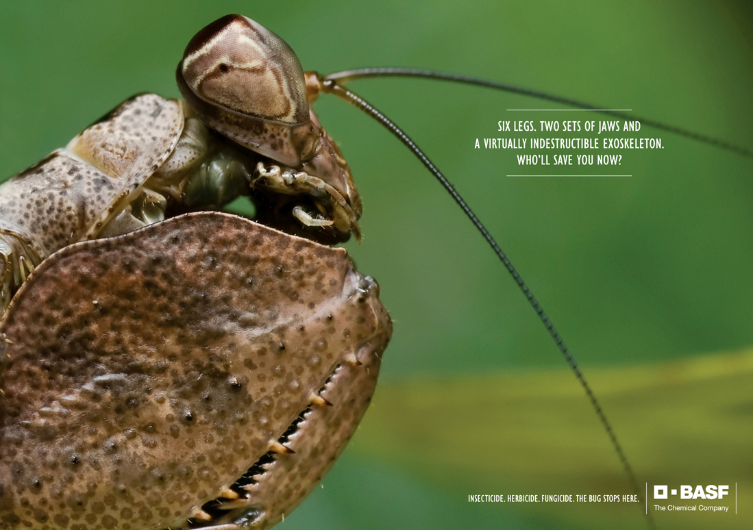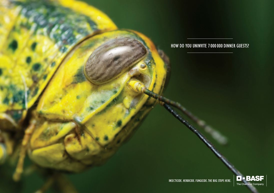 BASF. Жуки остановятся здесь!Агентство Draftfcb из Кейптауна разработало эти принты для одной из крупнейших химических компаний BASF. Одно из направлений деятельности этой компании - производство всевозможных средств для защиты от различного вида насекомых.На принтах посредством макросъемки африканские креаторы изобразили фотографии некоторых насекомых. Устрашающие слоганы гласят: "Шесть ножек. Две челюсти и практически неразрушающийся экзоскелет. Кто защитит вас теперь?" "120 000 глаз постоянно изучают ваш сад. Пока один глаз смотрит на вас, другие семь смотрят на ваши растения". "Как вы отнесетесь к 7 000 000 непрошенных гостей на ужин?" "Инсектицид. Гербицидов. Фунгицида. Насекомые остановятся здесь". Агентство: Draftfcb, Кейптаун, ЮАР Творческий директор: Schalk van der Merwe, Francois de Villiers Арт-директор: Schalk van der Merwe Копирайтер: Neil Gardiner Фотограф: Shutterstock, Opo Terser |