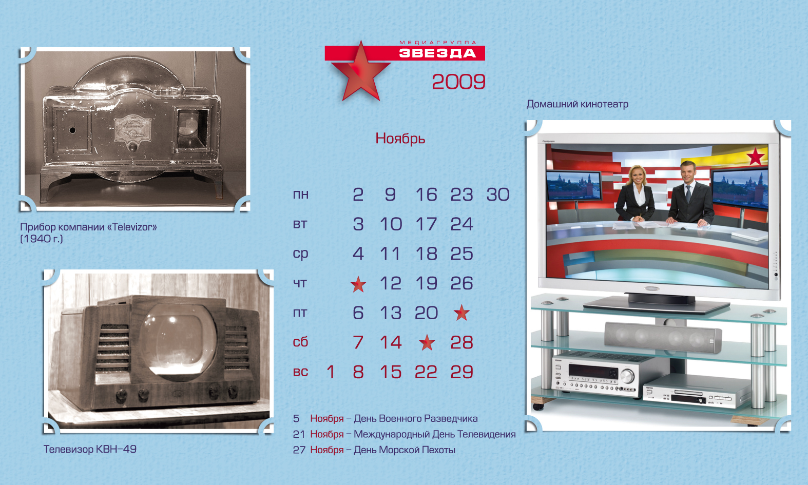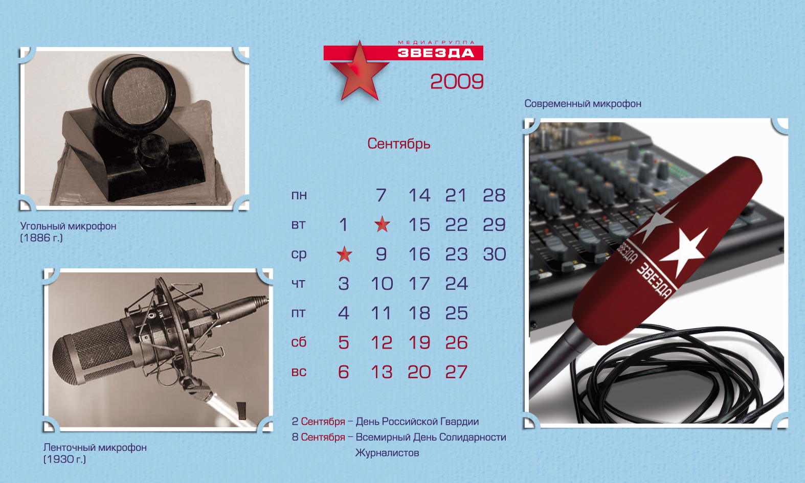 Мы за звездой не постоимВ основе концепции календаря лежит визуальный образ семейного фотоальбома, который содержит как очень старые фотографии, так и совсем свежие. С целью придания образу медиагруппы "Звезда" более "гражданского" очертания, вопреки сложившемуся образу СМИ в погонах, было решено использовать общедоступную, человеческую тематику развития: рождения, становления... А имиджевый ряд направлен подчеркнуть изменения, произошедшие, благодаря прогрессу в обычных "инструментах", которые СМИ использует в своей работе.Состав творческой группы Медиагруппа "Звезда": Светлана Бриллиантова Директор управления маркетинга Медиа-Группа "Звезда" Мария Юргель Ведущий специалист Управления маркетинга Медиа-Группа "Звезда" Галина Усольцева Менеджер управления маркетинга Медиа-Группа "Звезда" Ольга Глущенко Менеджер управления маркетинга Медиа-Группа "Звезда" Людмила Смороцкая Менеджер управления маркетинга Медиа-Группа "Звезда" РА Yooo Look: Наталья Иванова Креативный директор Ярослав Пашутин Арт-директор Елена Воронова Дизайнер Оксана Березовская Менеджер проекта. Юлия Дратованая Руководитель проекта. |