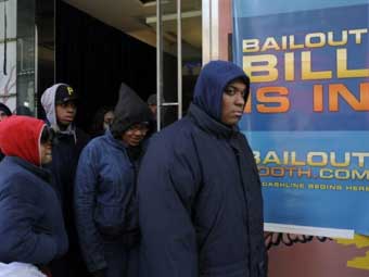 В центре Нью-Йорка жертвам финансового кризиса раздали деньгиНа Таймс-сквер в центре Нью-Йорка организовали раздачу наличных американцам, пострадавшим от финансового кризиса, сообщает France Presse 4 февраля. Человек, пожелавший скрыть свое настоящее имя, представлялся как Билл-спасение (Bailout Bill) и раздавал всем желающим финансовую помощь в размере от 50 долларов. Для этого обратившиеся должны были только рассказать о своих материальных трудностях на видеокамеру. По словам организаторов акции, они хотели сделать для рядовых американцев то же самое, что правительство делает для корпораций и банков. После Нью-Йорка Билл-спасение с помощниками собирается провести аналогичные акции в Вашингтоне, Бостоне и Филадельфии. В общей сложности планируется потратить 500 тысяч долларов. Акция по раздаче денег является частью пиар-кампании сайта объявлений Bailout Booth.![]() LENTA.RU |