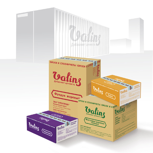 Брендинговое агентство EVOLUTION завершило разработку нового бренда, претендующего на лидерство в сегменте орехов и сухофруктов на рынке B2B– «VALINS». Цель работы, сформулированная заказчиком, - создать бренд, влияющий на рынок закупки и продажи орехов и сухофруктов и отражающий ценности покупателей. В рамках проекта были предусмотрены разработка стратегии продвижения бренда, создание названия, слогана, логотипа и дизайна коробки.