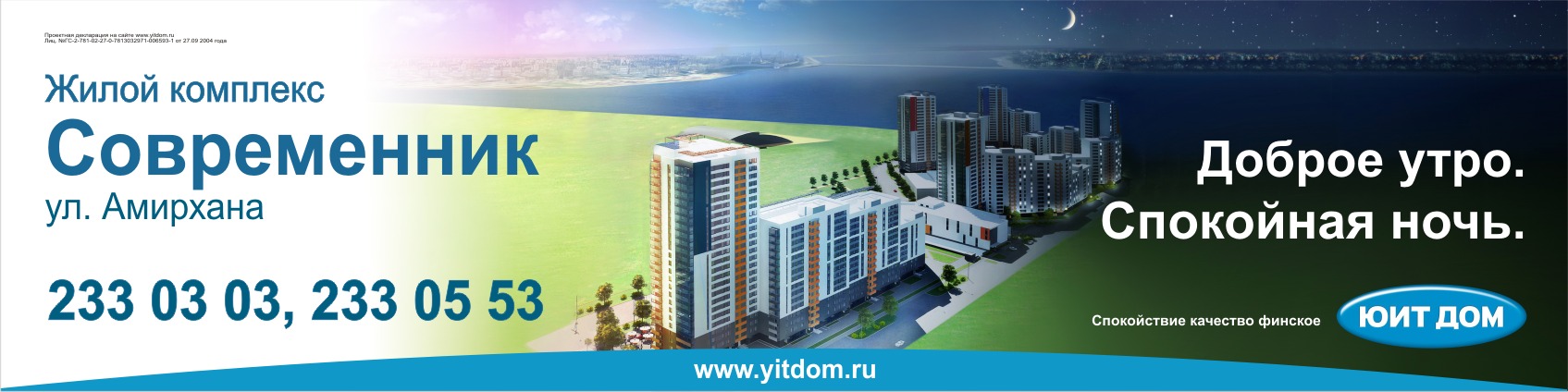 В Казани запущена региональная рекламная кампания жилого комплекса "Современник"В Казани стартовала рекламная компания очередного регионального проекта концерна ЮИТ - жилого комплекса "Современник".Застройщик комплекса, "ЮИТ Лентек", обратился в одно из ведущих местных рекламных агентств (РА "Концепто"), в котором, при участии специалистов по маркетингу "ЮИТ Лентек" была доработана концепция позиционирования нового жилого комплекса. Генеральный слоган кампании: "Доброе утро. Спокойная ночь" - это то, что нужно современному человеку, ведущему активный образ жизни. В своем доме он может отключиться от забот и полноценно отдохнуть в своем личном пространстве. |