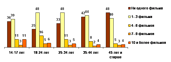 Треть россиян за последние три месяца ни разу не были в кинотеатреВ январе 2009 года исследовательский холдинг «Ромир» в рамках очередного онлайн-опроса задал россиянам несколько вопросов об их досуге. В исследовании приняло участие 2 225 респондентов в возрасте от 14 лет и старше. Кино, как известно, не только «важнейшее из искусств», но и широко любимый народом способ проведения досуга. Тем не менее, треть (34%) участников опроса ответили, что за последние три месяца не посмотрели в кинотеатре ни одного фильма, 46% респондентов посмотрели за это же время в среднем одину-три киноленты, каждый десятый (11%) опрошенный - четыре, пять или шесть фильмов, 8% за последние три месяца посмотрели 7 и более кинокартин. В целом, ответы на вопрос: «Сколько фильмов вы посмотрели за последние три месяца в кинотеатре?» распределились следующим образом: ![]() Среди разных возрастных категорий ответы на вопрос: «Сколько фильмов Вы посмотрели за последние три месяца в кинотеатре?»,(%) распределились следующим образом: ![]() Частота посещения кинотеатров возрастает с ростом уровня дохода респондентов. А доля тех, кто не ходит в кино, соответственно, заметно снижется (с 45% до 28%). www.rmh.ru |