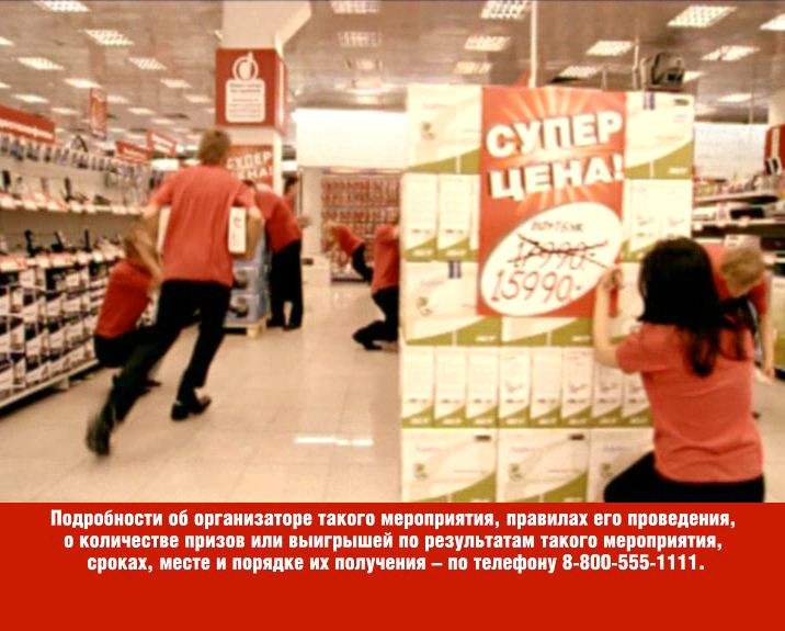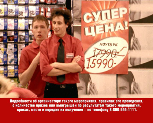 Х5 обвинила "Эльдорадо" в незаконном использовании ее товарного знака "Красная цена", пишет "Коммерсант". В спорном ролике демонстрируется торговый зал и коробки с надписями "Суперцена!" (текст в красном прямоугольнике). В это время персонаж Вадима Галыгина сообщает о том, что товары продаются по "красной цене".
