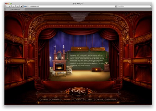 Бюро Пирогова построило театр на сайте компании Джет-ХолдингБюро Пирогова завершило работу над сайтом для Джет-Холдинг - компании, которая уже более 12 лет занимается комплексным проектированием и созданием роскошных дворцовых интерьеров. Бюро Пирогова разработало оригинальную концепцию сайта, соответствующую пожеланию заказчика – получить эксклюзивное решение, способное удивить и заинтриговать взыскательную публику. Вдохновением послужил театр как воплощение по-настоящему роскошных, эксклюзивных интерьеров. Это театр одного зрителя, который может управлять действием с помощью персонального пульта (меню сайта). История изложена в виде пьесы об интерьерах в 7 актах, в ходе которой он знакомится с компанией Джет-Холдинг и ее сотрудниками, портфолио, крупнейшими партнерами. А в антракте для зрителя приготовлен сюрприз – выступление пианиста. Дизайнерами Бюро Пирогова был разработан собирательный образ театра и уникальный дизайн каждого акта пьесы с декорациями. Детали проработаны до мелочей: кулисы, например, смоделированы в 3D для того, чтобы их движение выглядело реалистичным. В разделе «портфолио» реализована схема стилизации под видео - на экране демонстрируется интерьер, но это не видео, а изображение. Благодаря чему решается проблема добавления работ клиентом самостоятельно. |