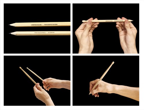 Кристиан Делано играет на барабане карандашамиВ современном мире уже вошло в норму создавать не обычные скучные визитки, а творить настоящие шедевры, такие как визитка-презерватив, визитка-тренажер или визитка-косточка. Сегодня нашему вниманию предстает работа бразильских креаторов из рекламного агентства Bronx, выполненная по заказу учителя-барабанщика Кристиана Делано (Christian Delano). Девайс, созданный креаторами, выполняет сразу три функции: это и визитка, и карандаш, и барабанные палочки одновременно.